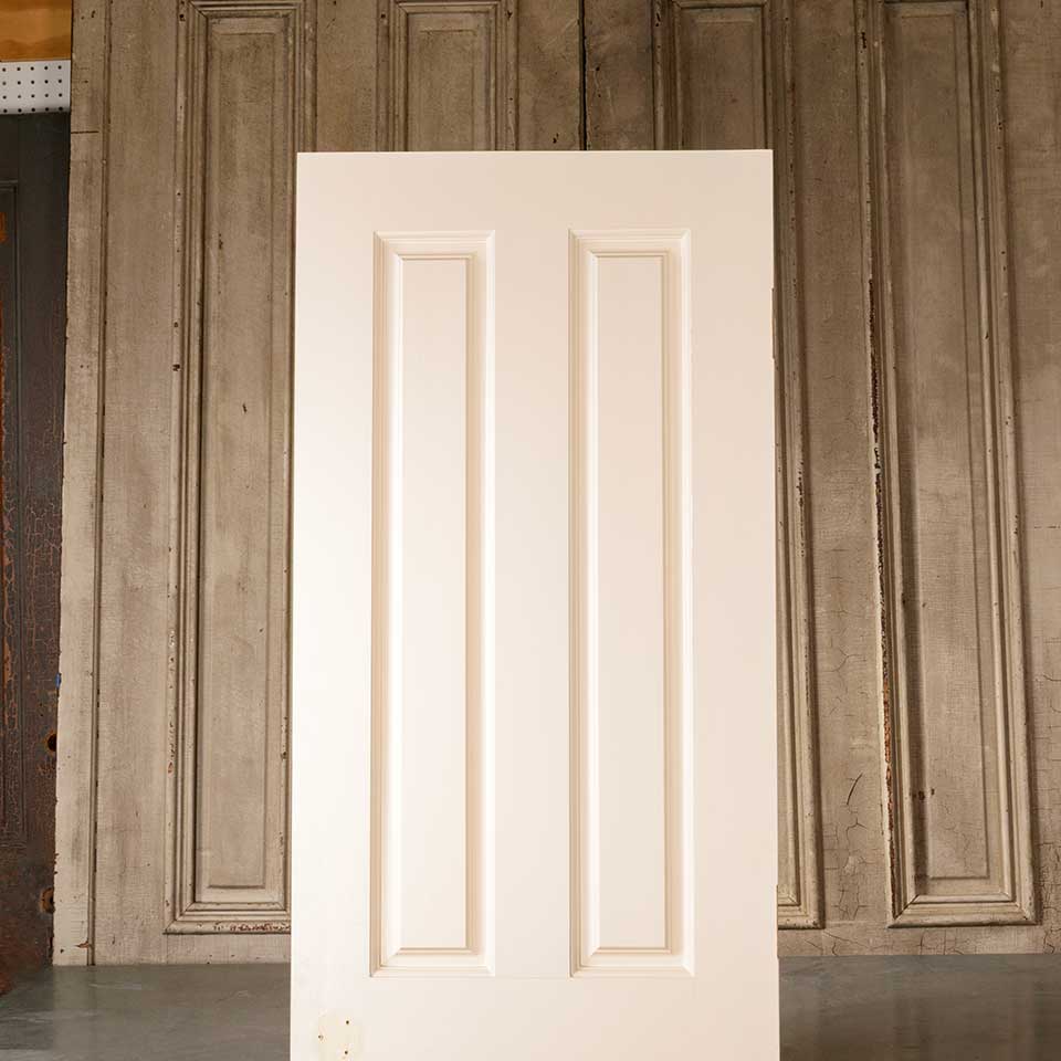 Architectural salvage four panel painted wood interior door measuring approx. 23 5/8" wide x 79 7/8" tall x 1 3/8" thick. This is not an antique door. See photos to evaluate condition.