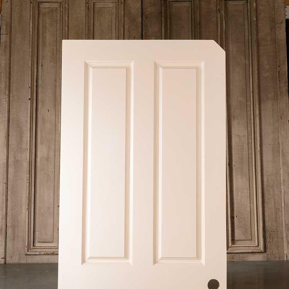 Architectural salvage four panel painted wood interior door measuring approx. 29 3/4" wide x 80" tall x 1 3/8" thick. This is not an antique door. One of the top corners is clipped. See photos to evaluate condition.