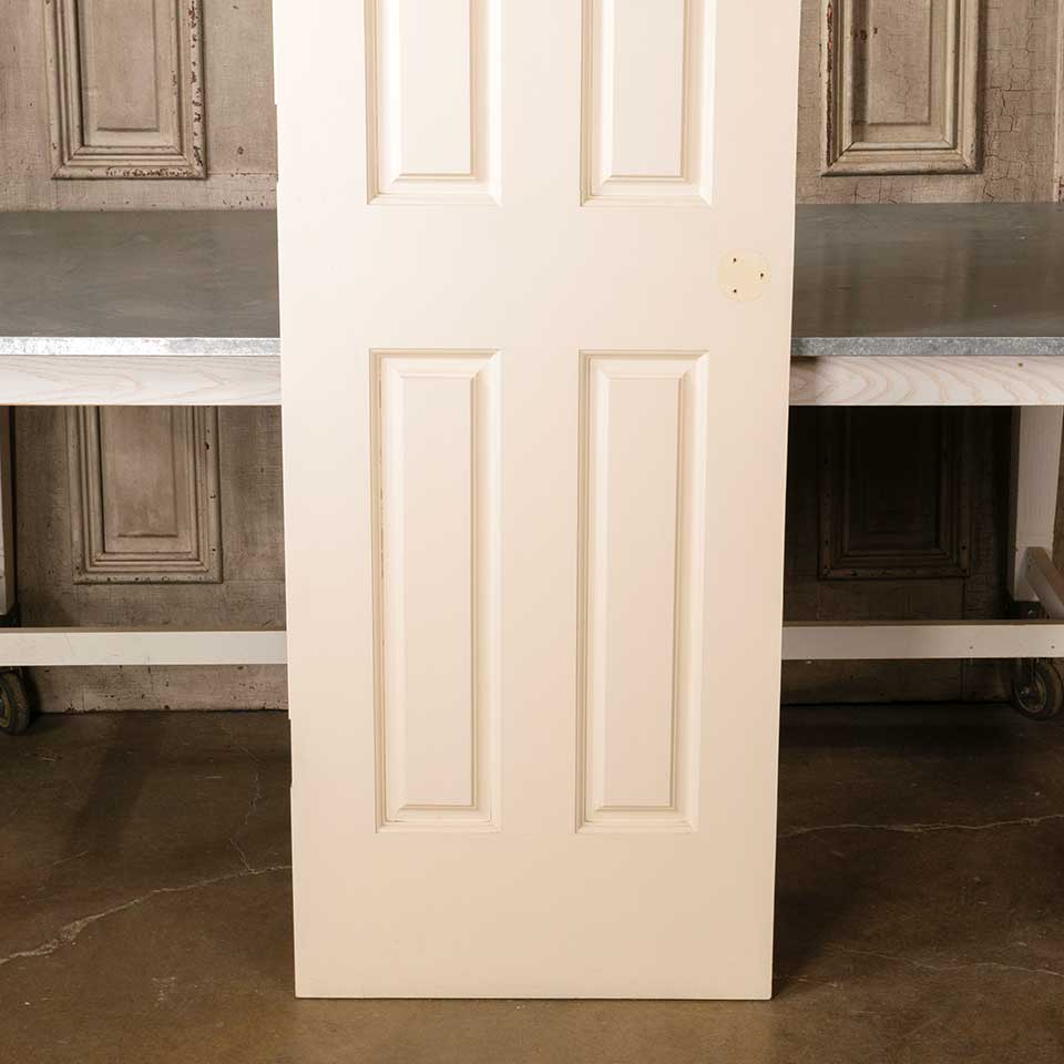 Architectural salvage four panel painted wood interior door measuring approx. 23 3/4" wide x 80" tall x 1 3/8" thick. This is not an antique door. See photos to evaluate condition.