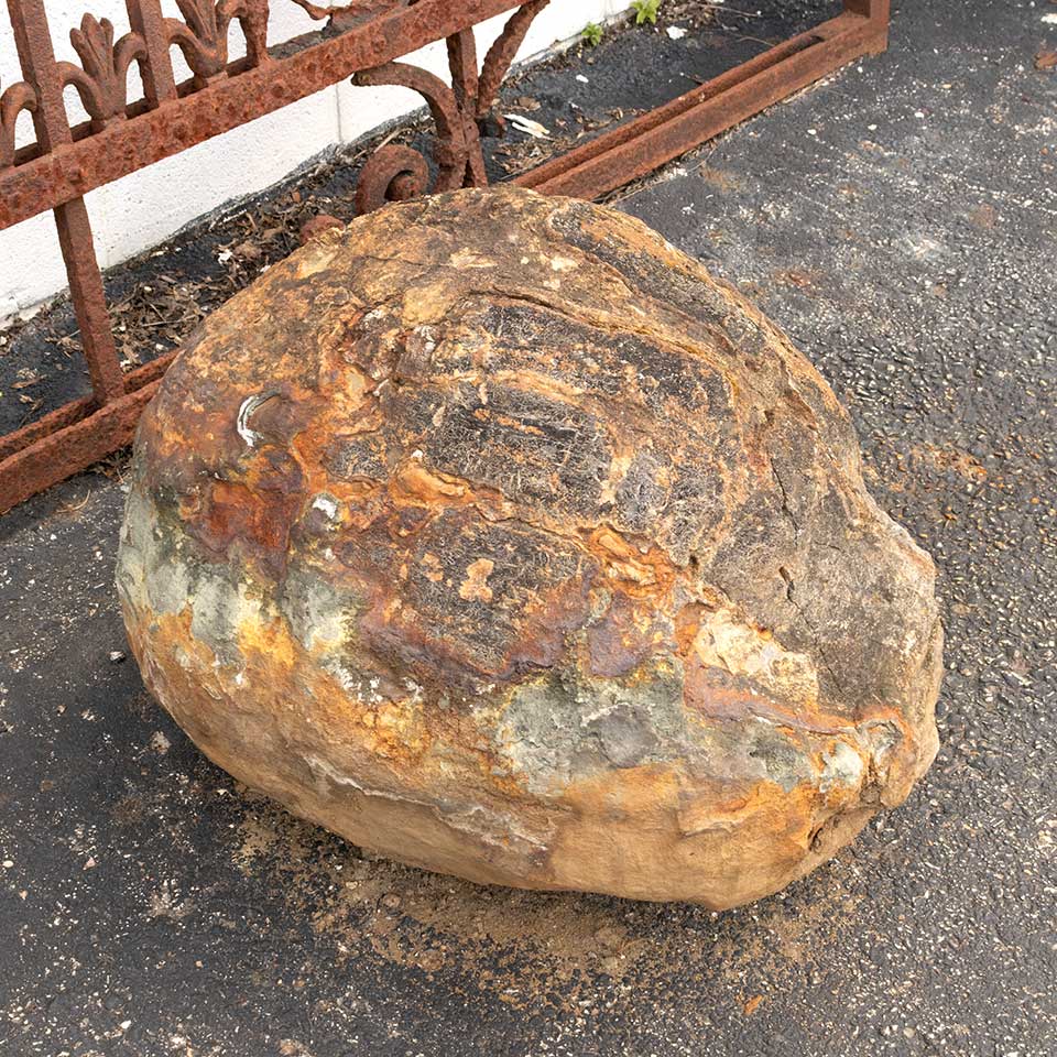 Large stone concretion garden landscape ornament measuring approx. 20" in diameter. See photos to evaluate condition.