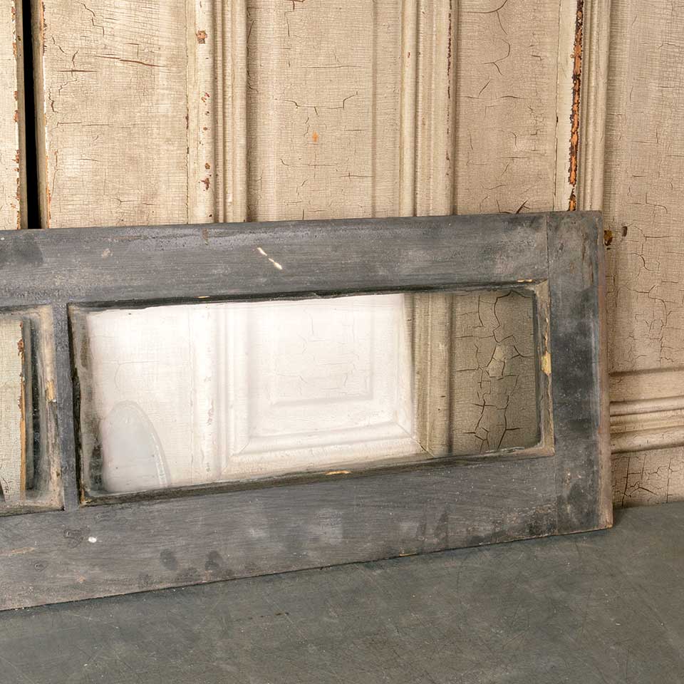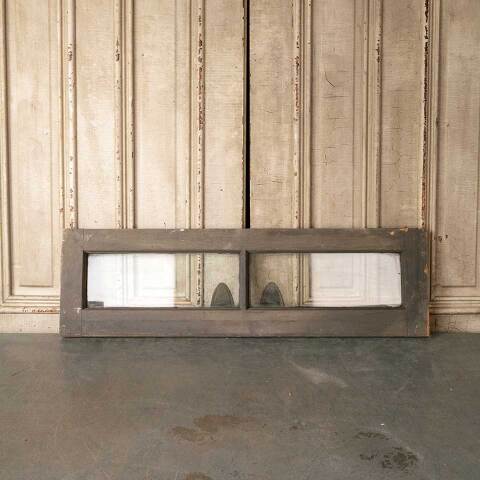 Architectural salvage antique divided two lite wood transom window measuring approx. 39 7/8" wide x 11 5/8" tall x 1 5/16" thick. See photos to evaluate condition.