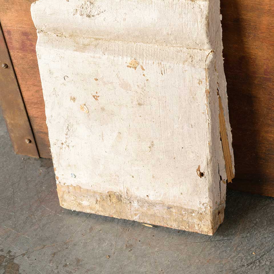 Architectural salvage antique painted wood interior door plinth trim block measuring approx. 5 1/2" wide x 9 1/4" tall x 1 1/16" front to back. Color and condition vary.