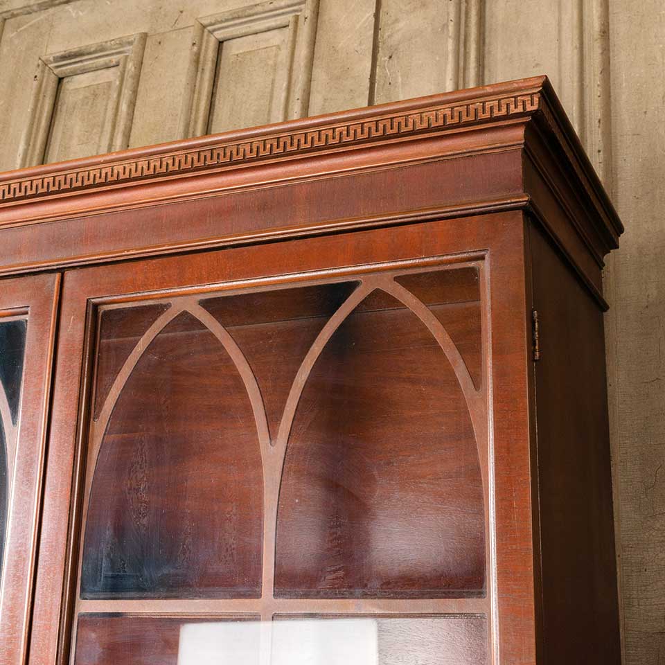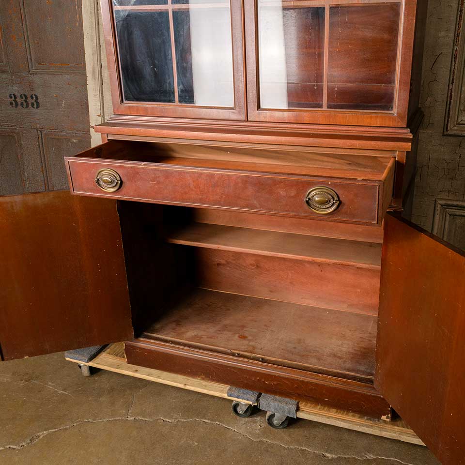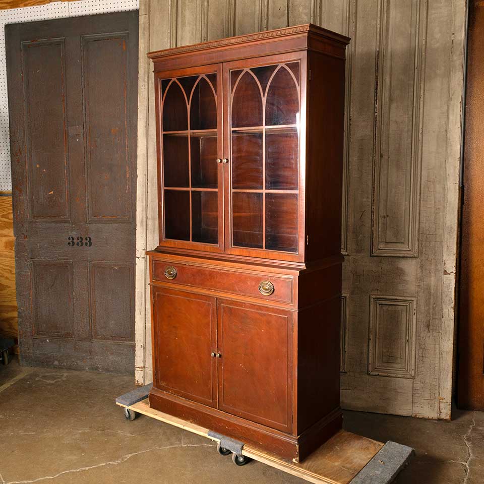 Antique China cabinet measuring approx. 35" wide x 71 3/8" tall x 16 1/4" front to back. There's some wood loss on the corners of the base mouldng. See photos to evaluate condition.