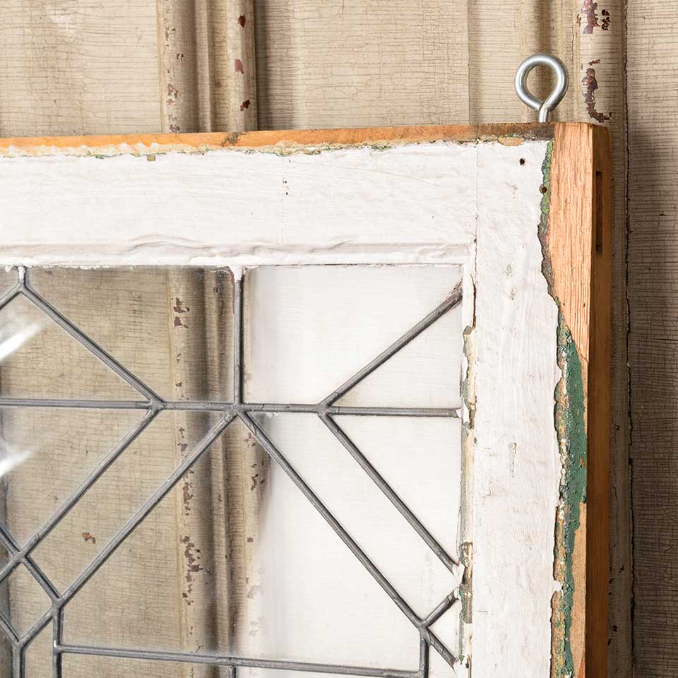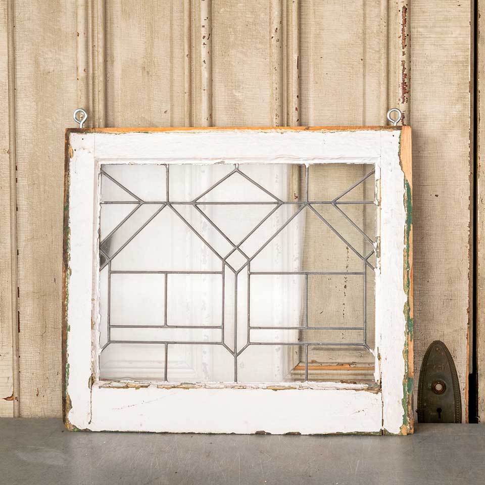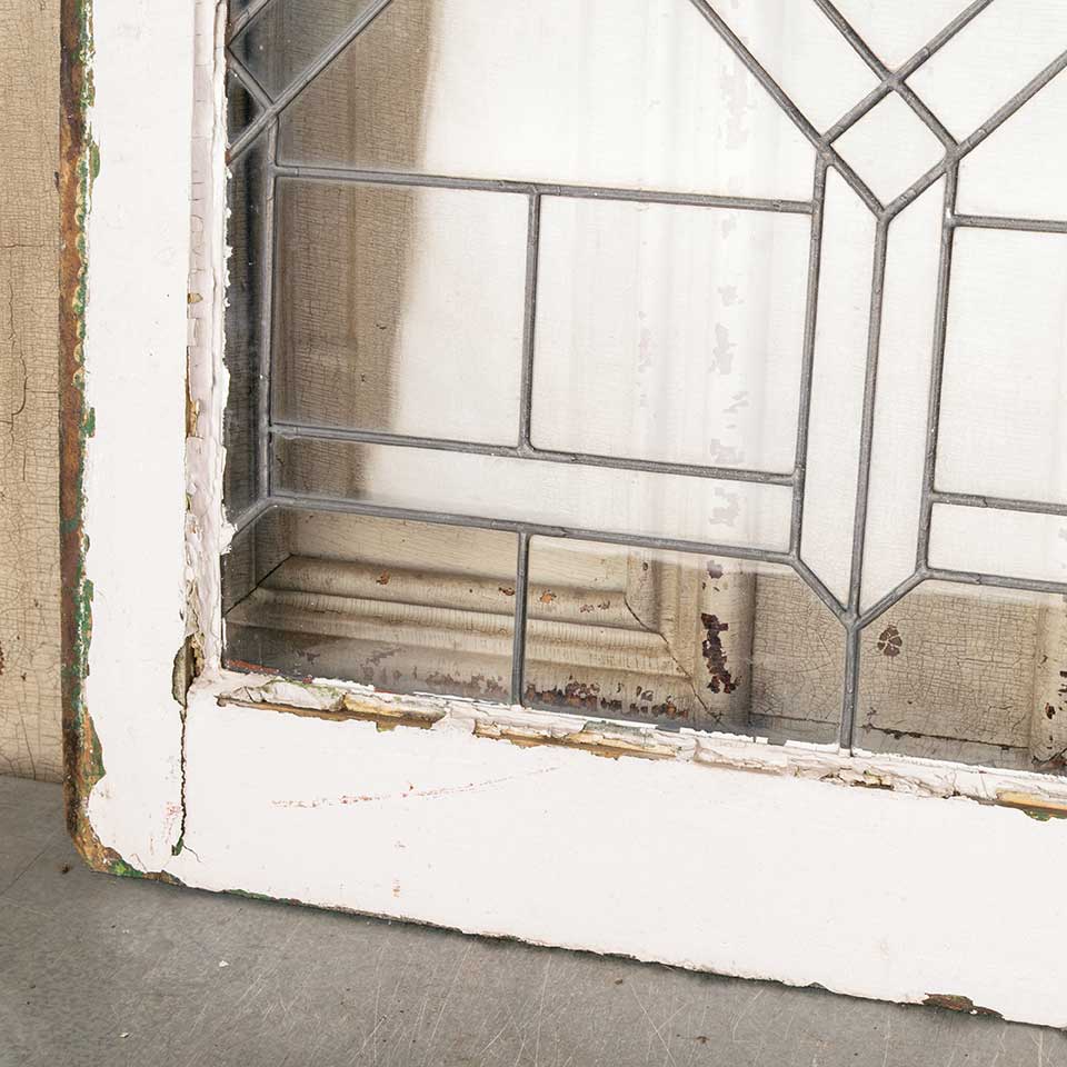 Architectural salvage antique leaded glass window measuring approx. 21 1/4" wide x 24 1/8" tall x 1 3/8" thick. See photos to evaluate condition.