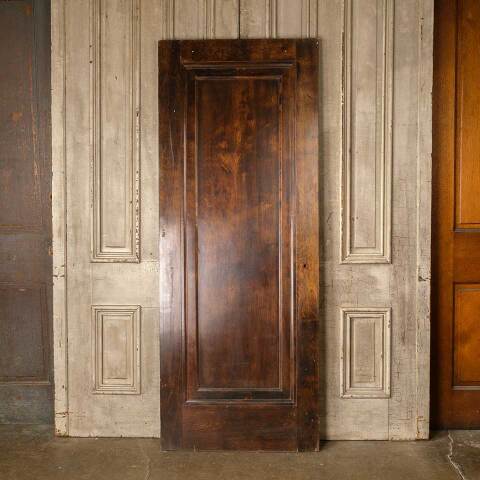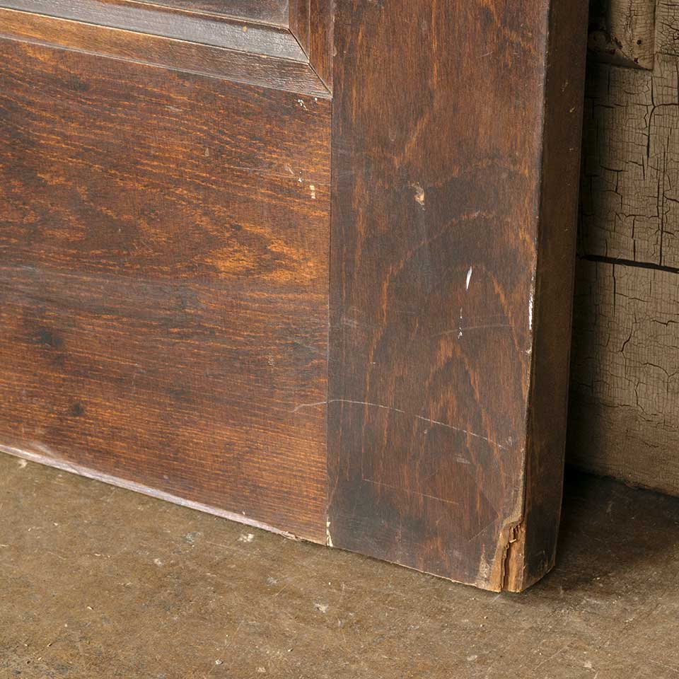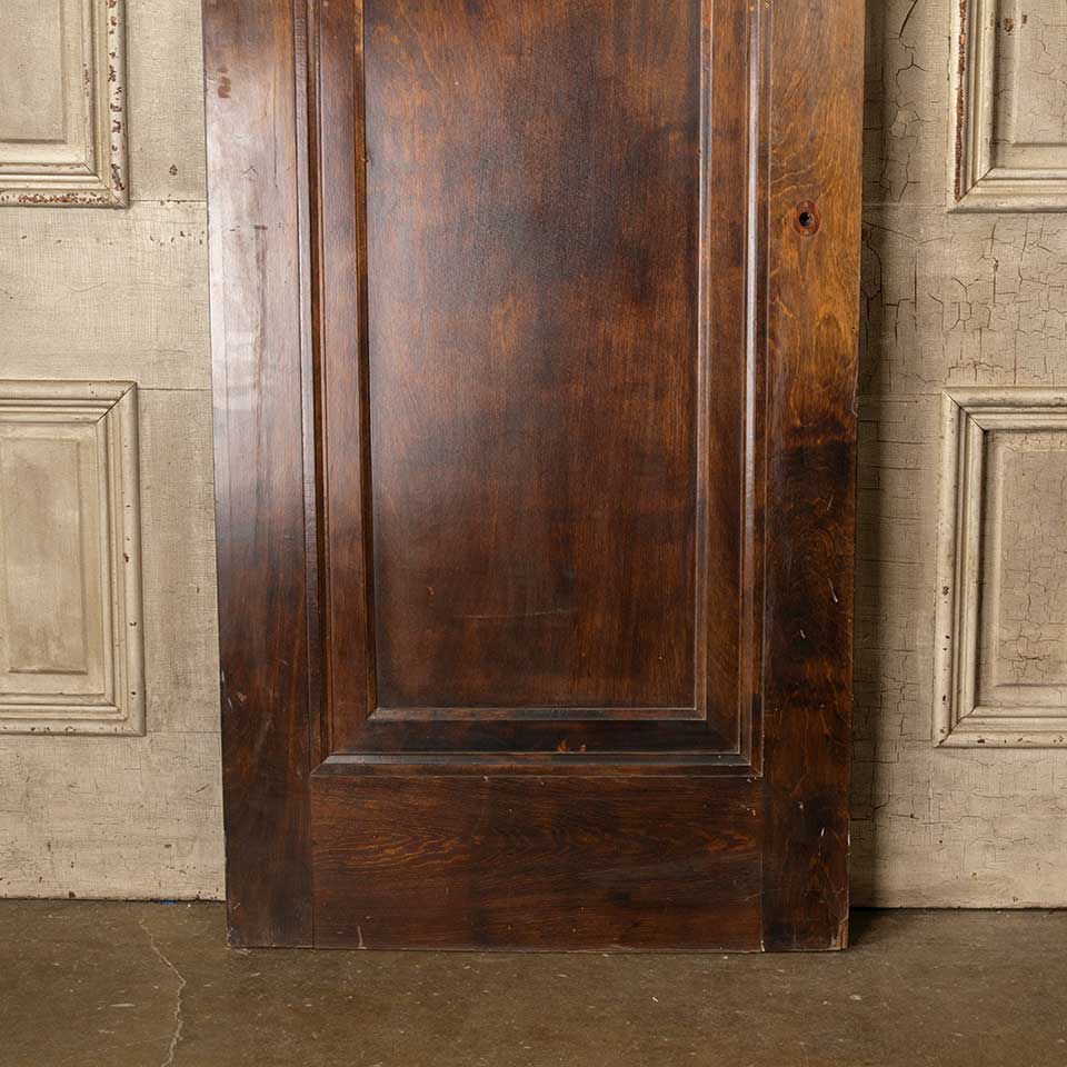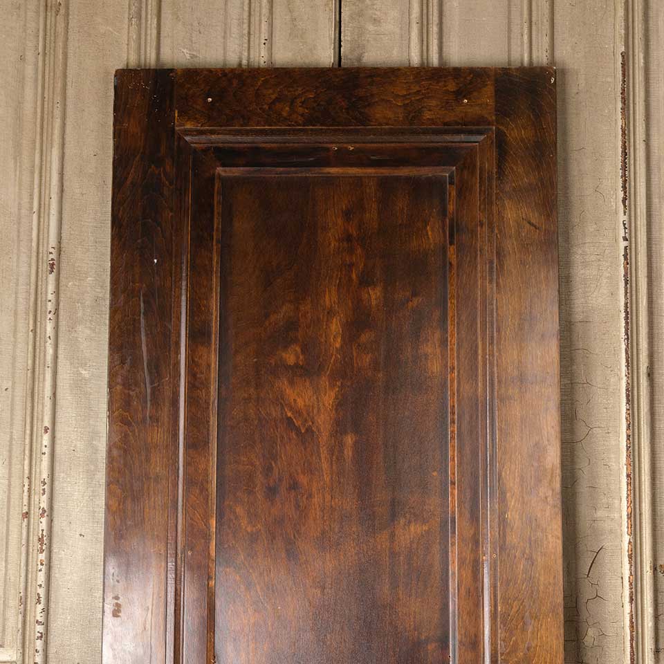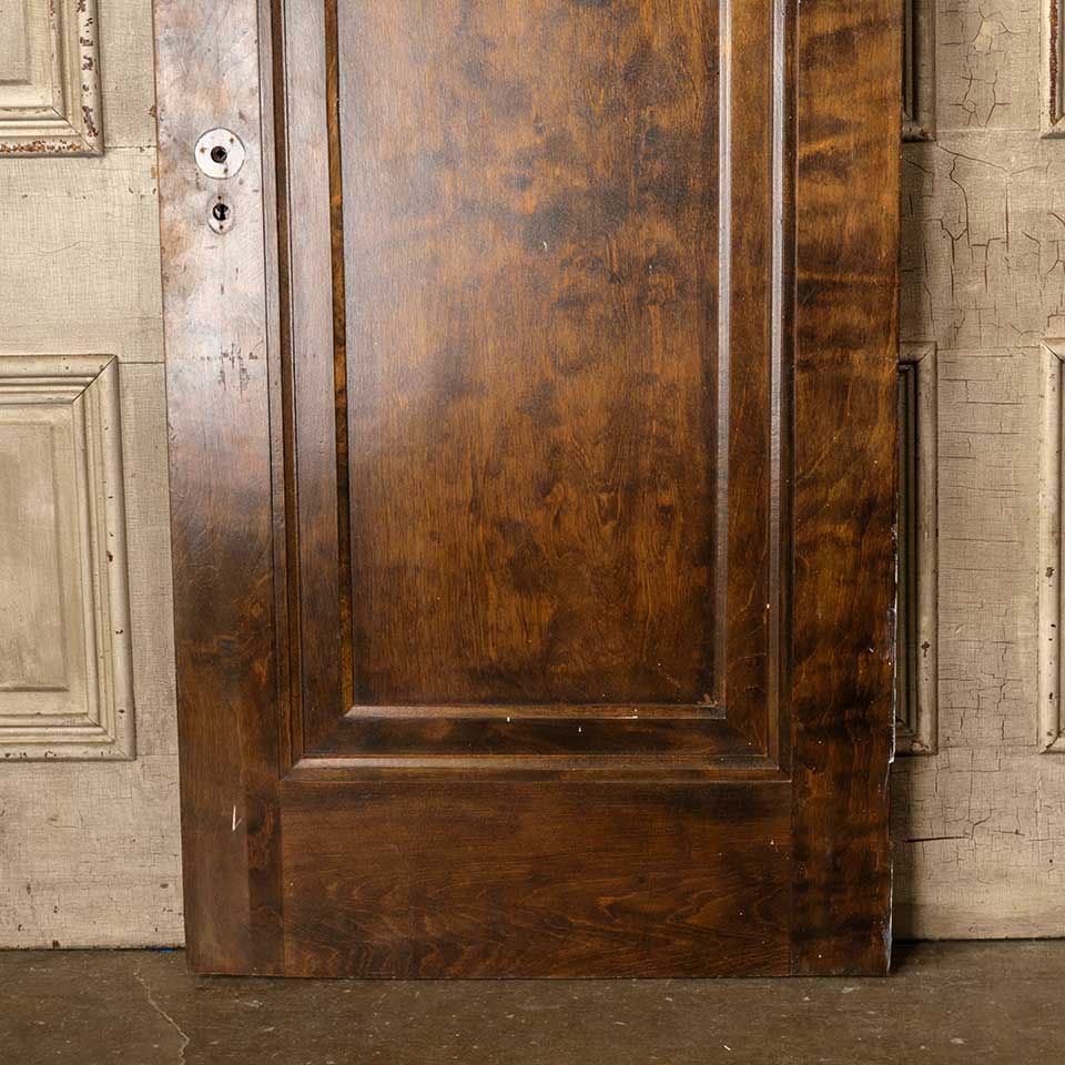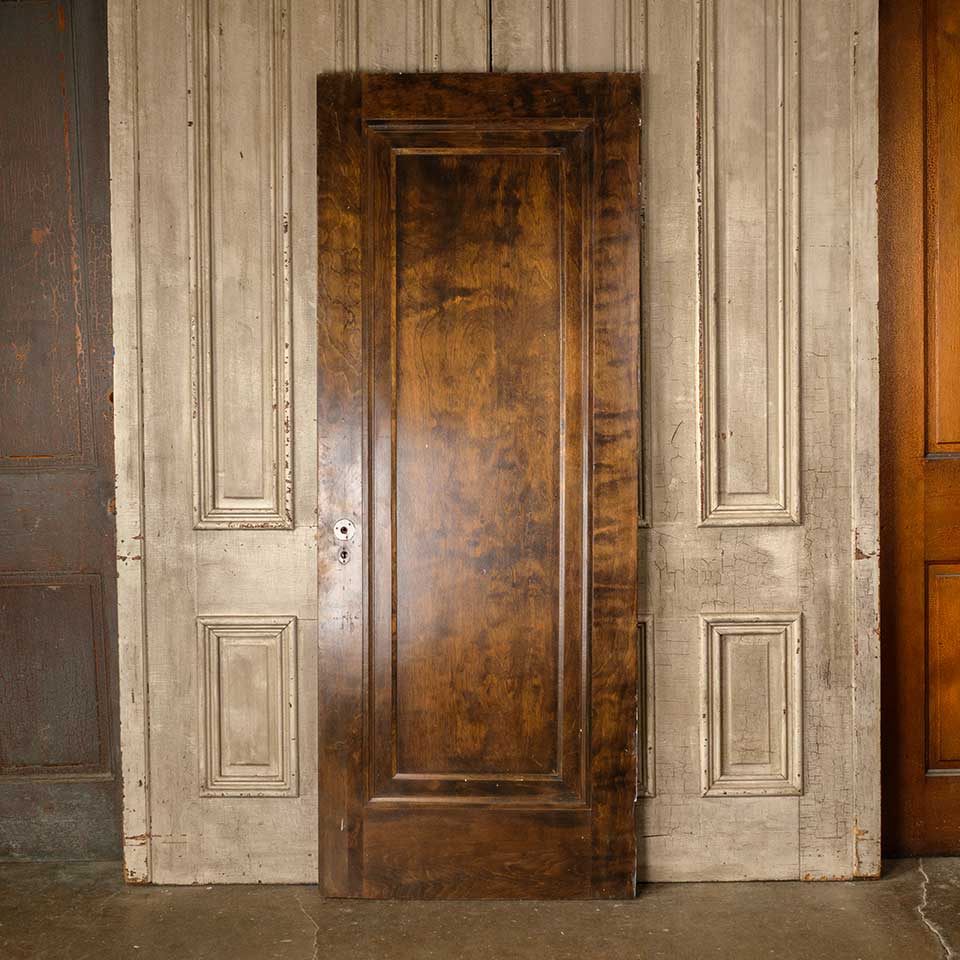 Architectural salvage antique wood one panel interior Miracle door with mortise lock measuring approx. 29 15/16" wide x 76 7/8" tall x 1 3/8" thick. Veneer is loose at bottom corner. See photos to evaluate condition.
