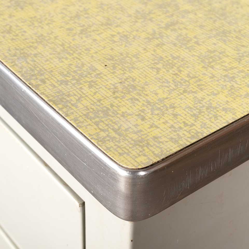 Architectural salvage vintage SIMMONS Furniture metal cabinet measuring approx. 20" wide x 31 1/4" tall x 17 5/8" front to back. See photos to evaluate condition.