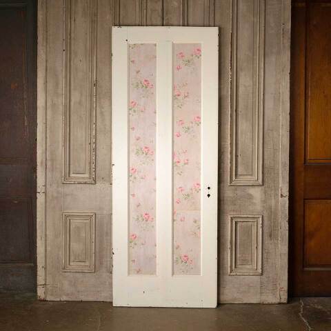Architectural salvage antique painted wood vertical two panel interior door measuring approx. 30" wide x 79 3/4" tall x 1 3/8" thick. There's some wood loss on one side of the door. See photos to evaluate condition.
