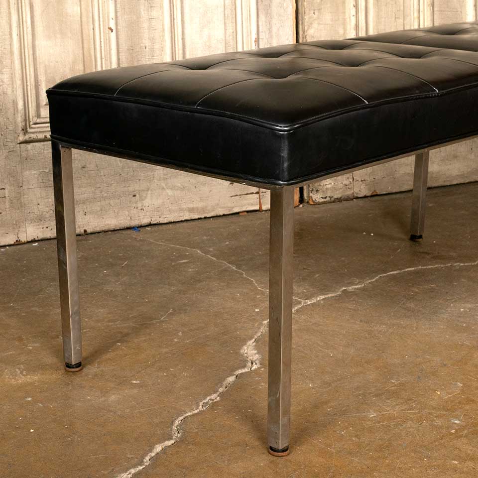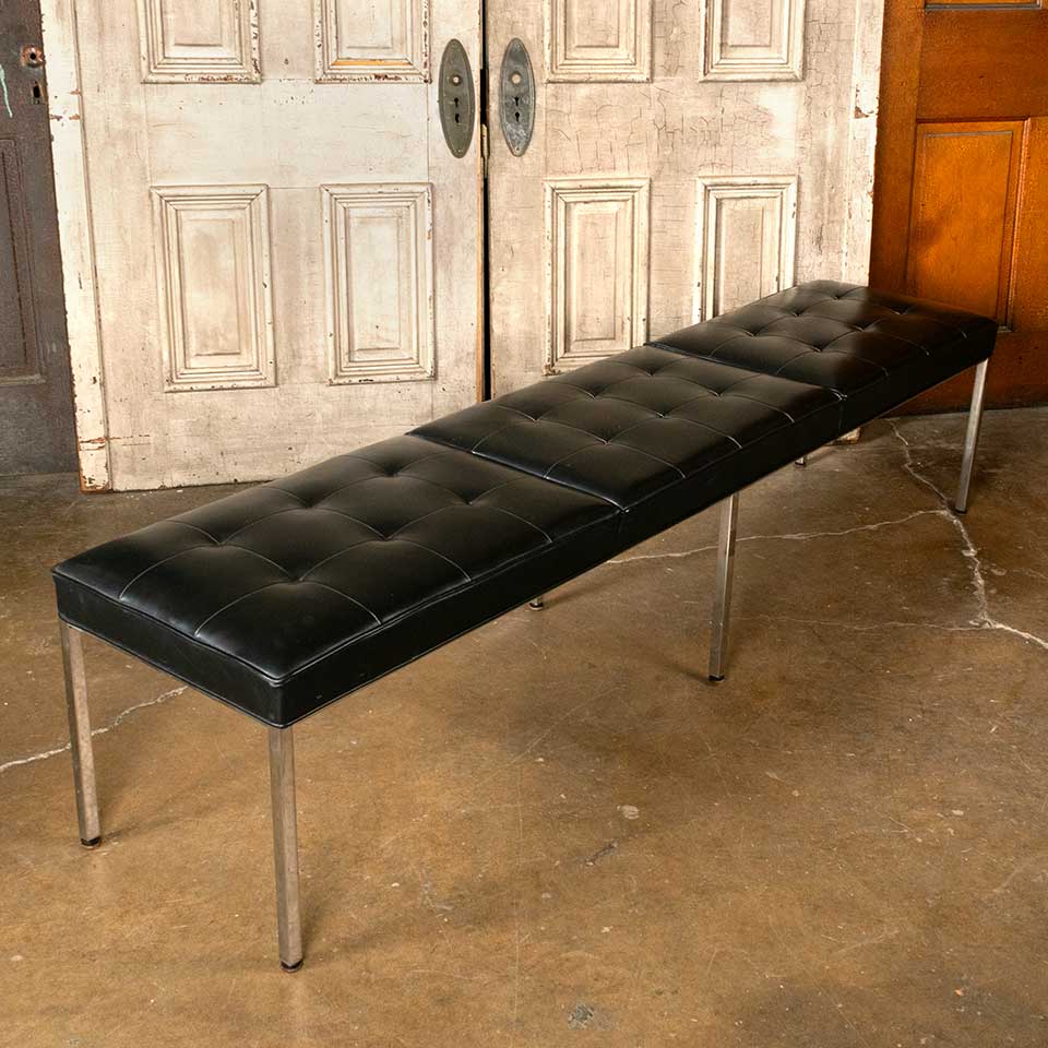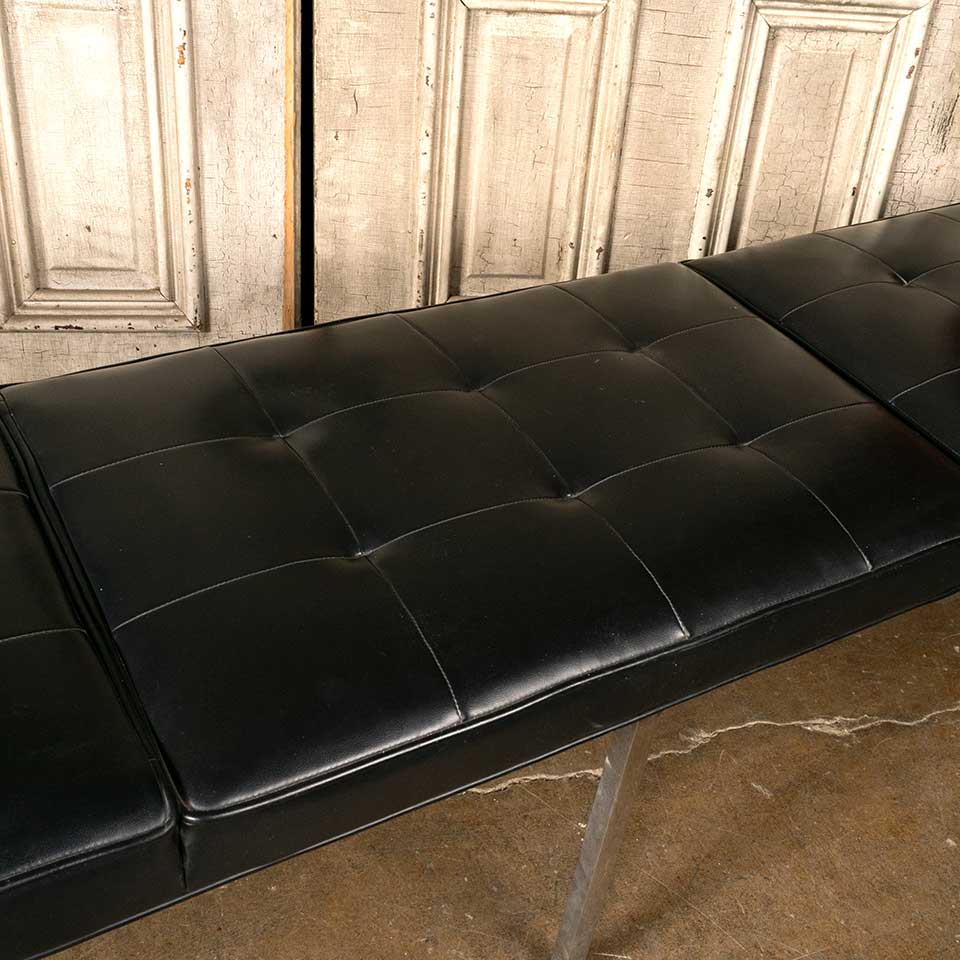 Architectural salvage vintage Mid-Century Modern upholstered bench measuring approx. 82" wide x 18 1/2" tall x 18 1/4" front to back. See photos to evaluate condition.