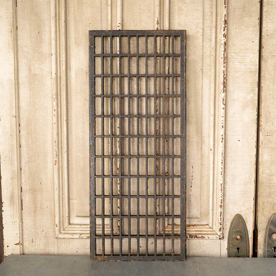Architectural salvage antique cast iron cold air return floor grate vent cover measuring approx. 11 7/8" x 29 7/8" (insert dimensions) and 13" x 31" (overall dimensions). See photos to evaluate condition.