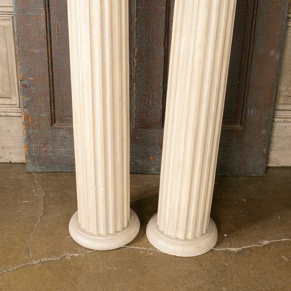 Set of two architectural salvage antique painted wood fluted columns each measuring approx. 40 1/2" tall with a 10" diameter base and a 5 1/4" diameter top. There are no column capital tops with these columns. See photos to evaluate condition. Priced at $175 for the set of two columns.