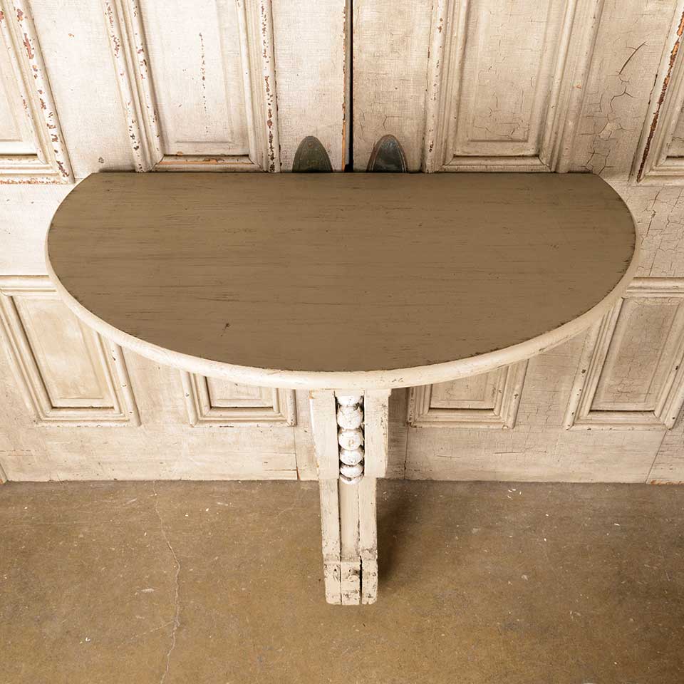 Repurposed architectural salvage antique painted wood house corbel bracket demilune console table measuring approx. 36" wide x 37 3/4" tall x 23" front to back. See photos to evaluate condition.