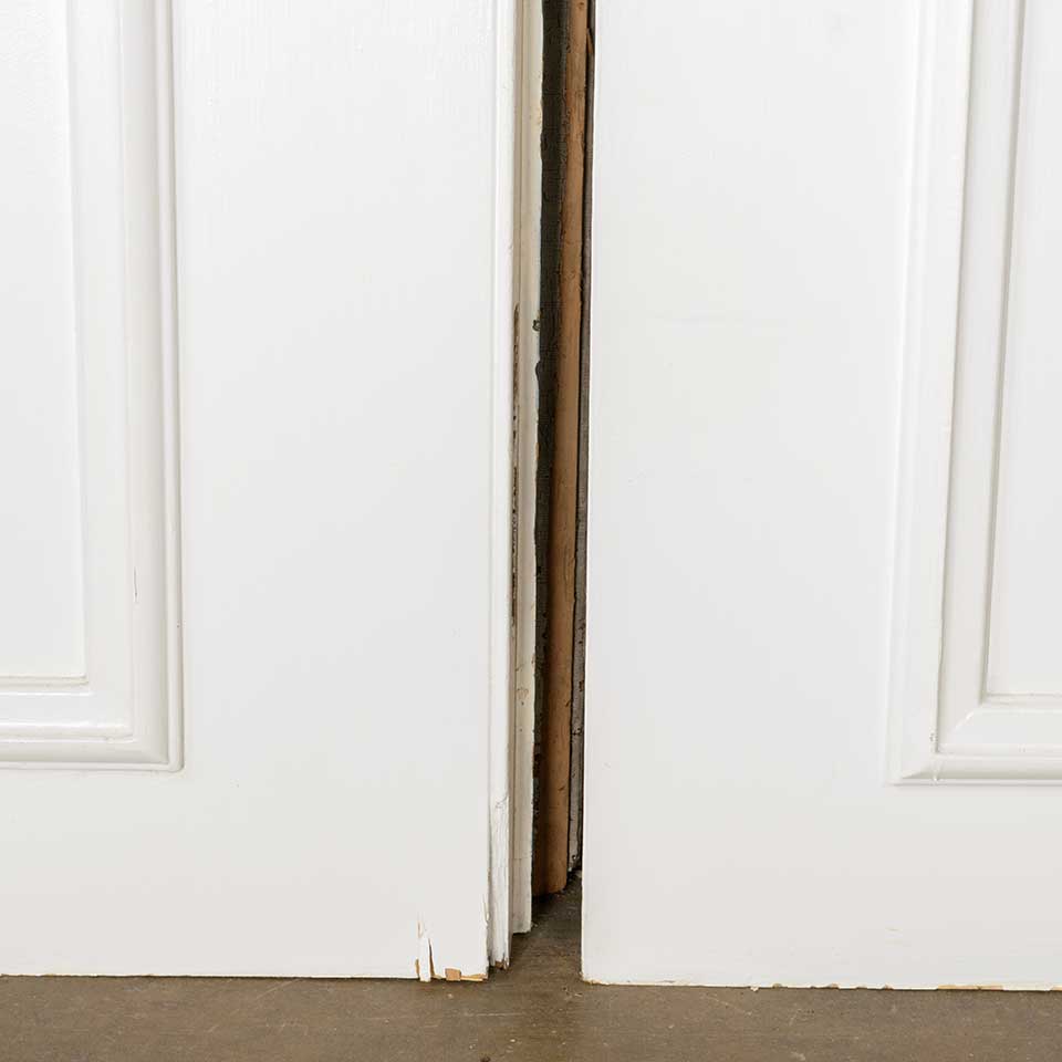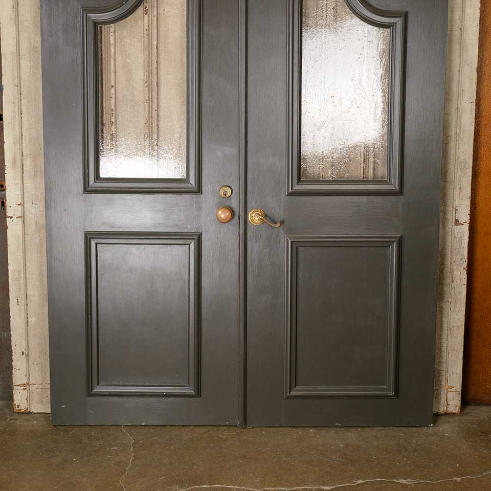 Architectural salvage vintage half lite wood entry doors together measuring approx. 59 3/4" wide x 78 5/8" tall x 1 3/4" thick. See photos to evaluate condition. Priced at $850 for the two doors together.