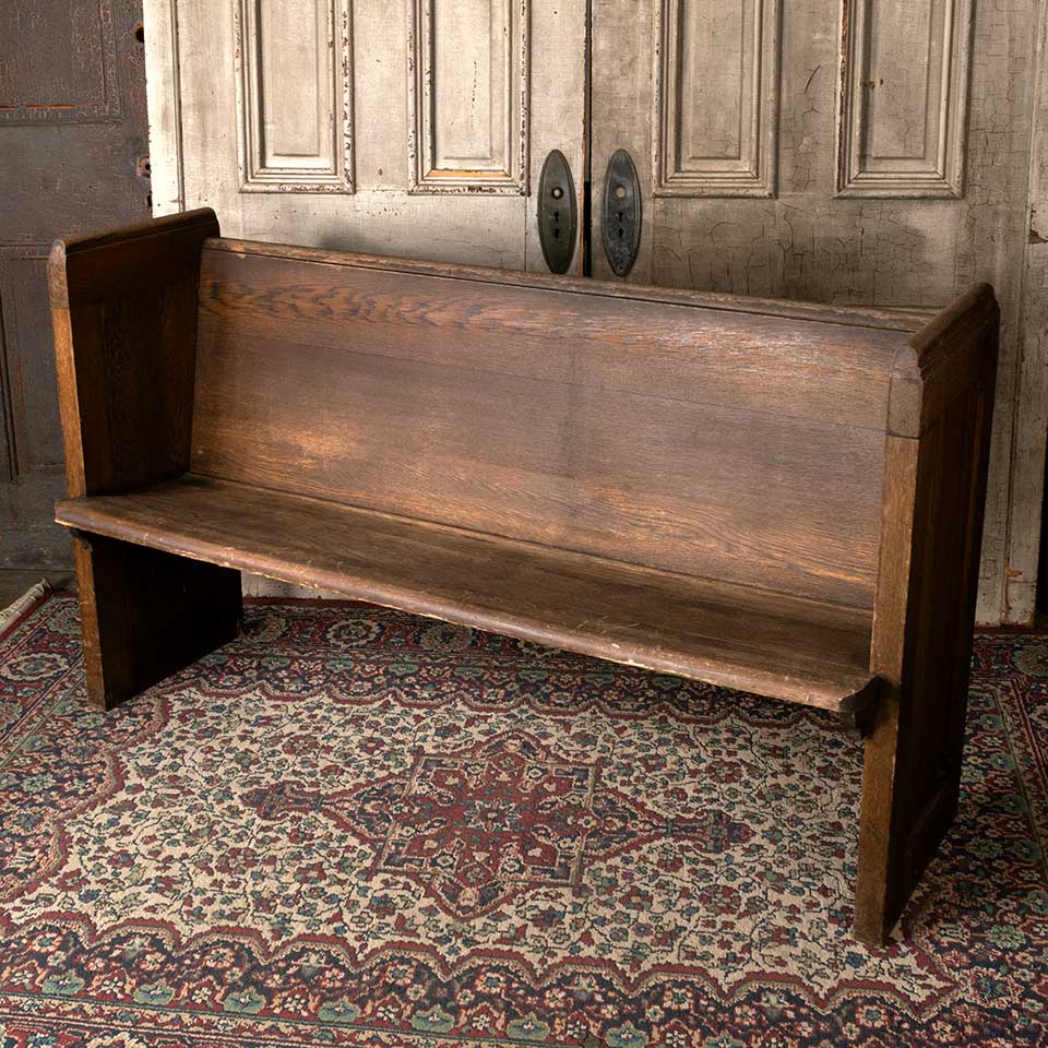 Architectural salvage antique oak church pew bench measuring approx. 60" wide x 35" tall x 19 3/4" front to back. See photos to evaluate condition.