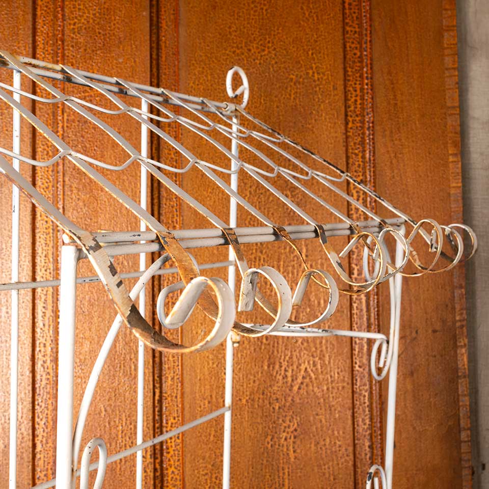 Painted metal plant stand measuring approx. 22 3/4" wide x 31 1/4" tall x 12" front to back. See photos to evaluate condition.