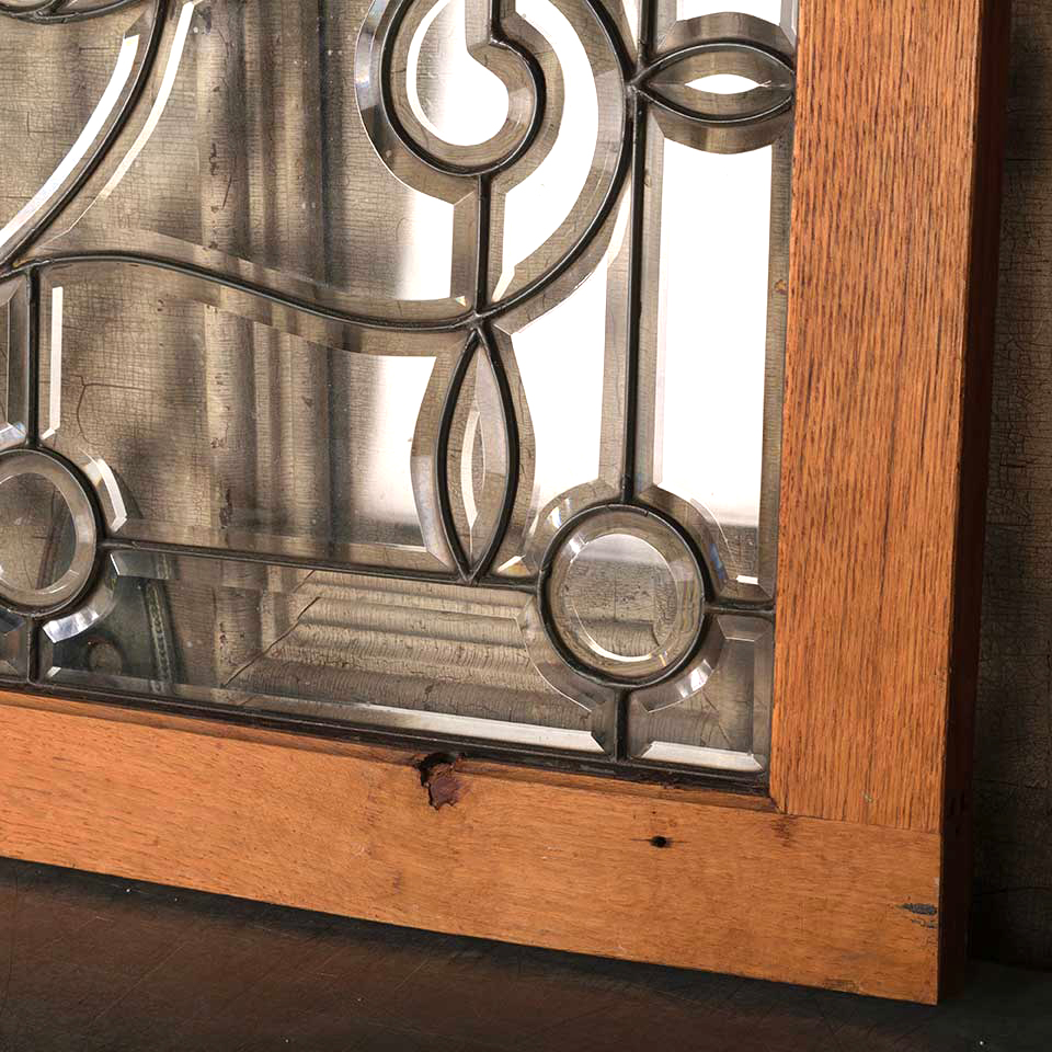 Architectural salvage antique leaded beveled glass window sash measuring approx. 37" wide x 24 3/4" tall x 1 1/4" thick. See photos to evaluate condition.