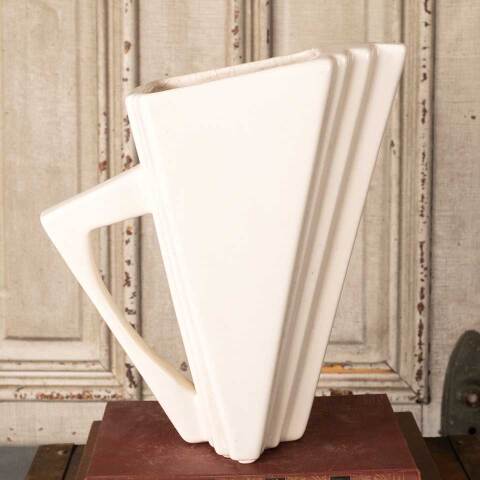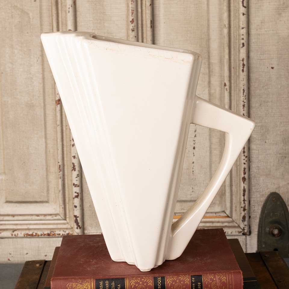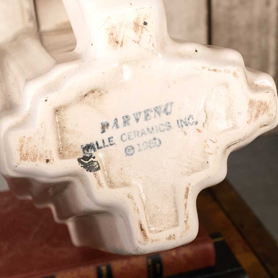 Vintage 1980 ceramic Nalle Ceramics Inc. Art deco revival pitcher measuring approx. 4" wide x 10" tall x 10" front to back. See photos to evaluate condition.