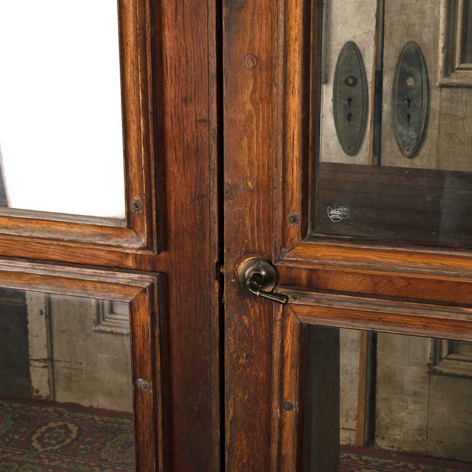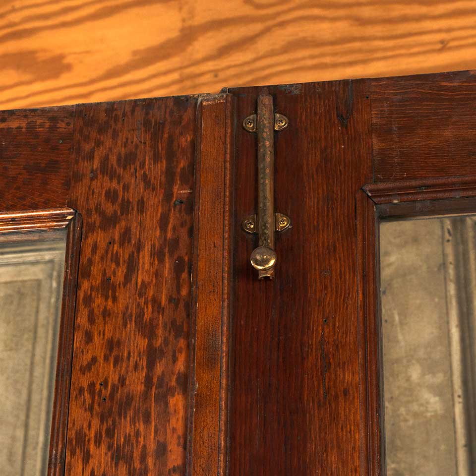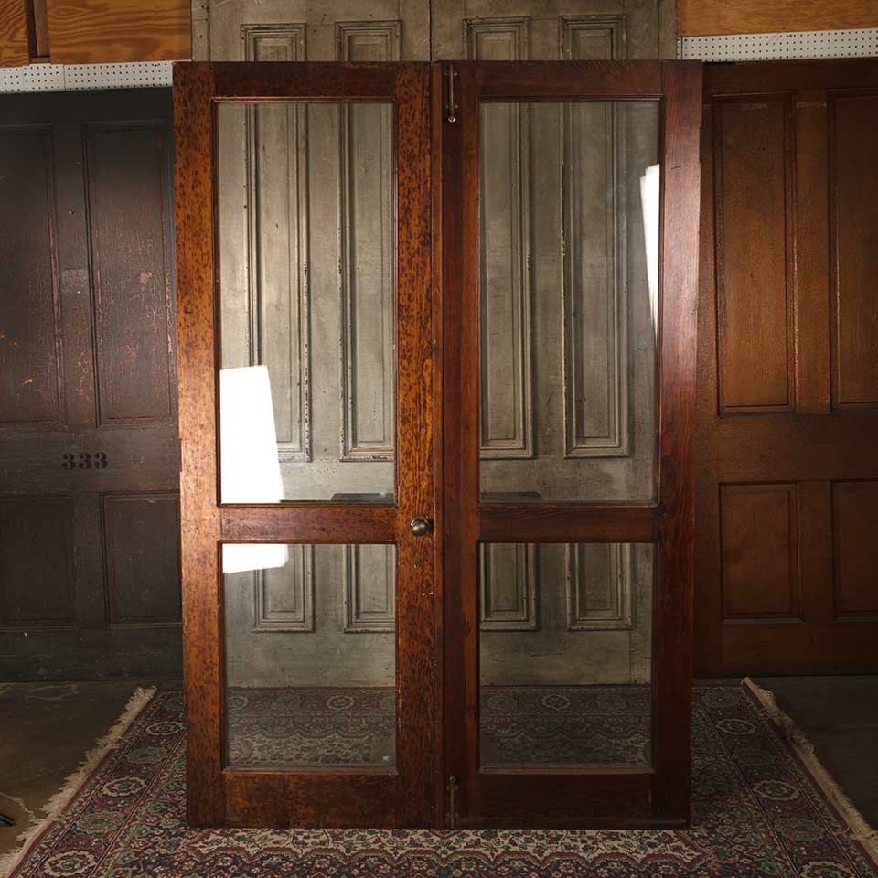 Architectural salvage vintage set of wood double storm doors with hardware together measuring approx. 55 5/8" wide x 83 1/4" tall x 1 1/8" thick. See photos to evaluate condition. Priced at $795 for the set.
