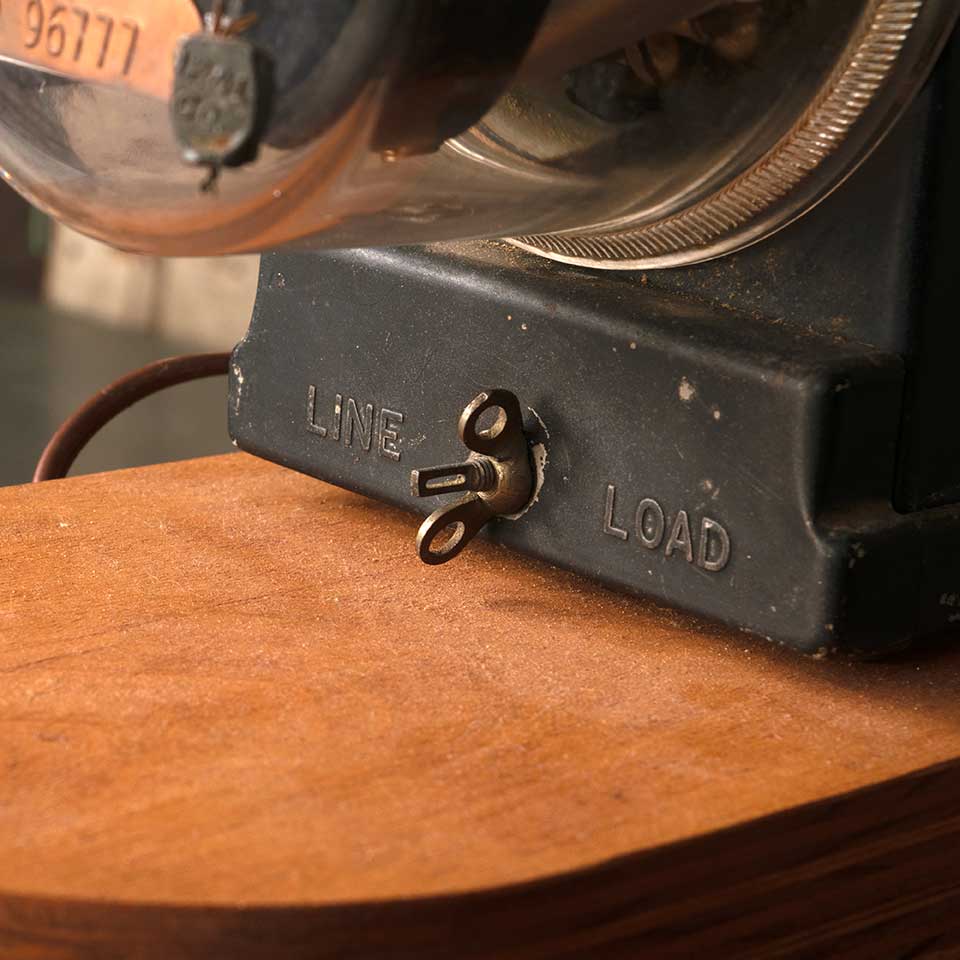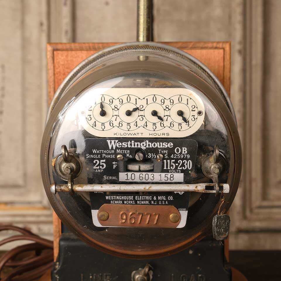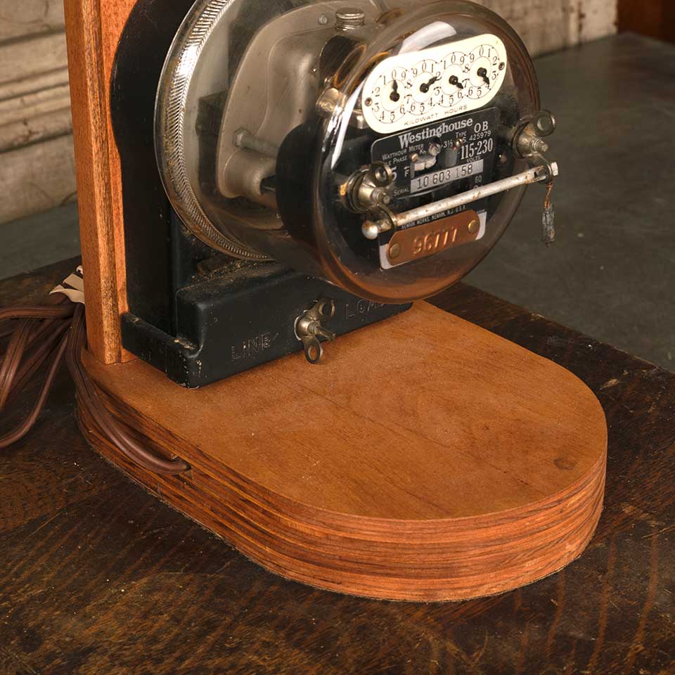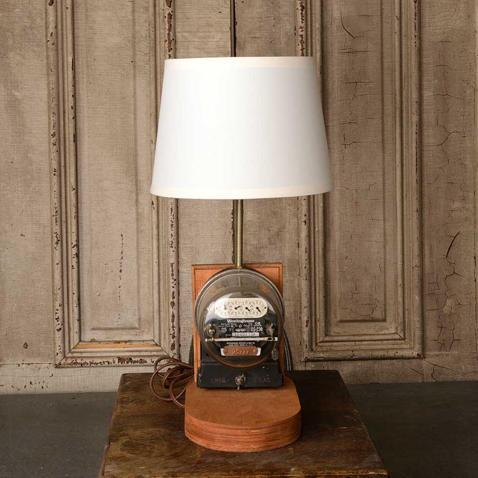 Repurposed architectural salvage antique Weston Electrical Instruments Company electric amperes meter table lamp with shade measuring approx. 10 3/8" wide x 20 1/4" tall x x 10" front to back. See photos to evaluate condition. Salvaged lighting should be inspected by a licensed electricians prior to use.
