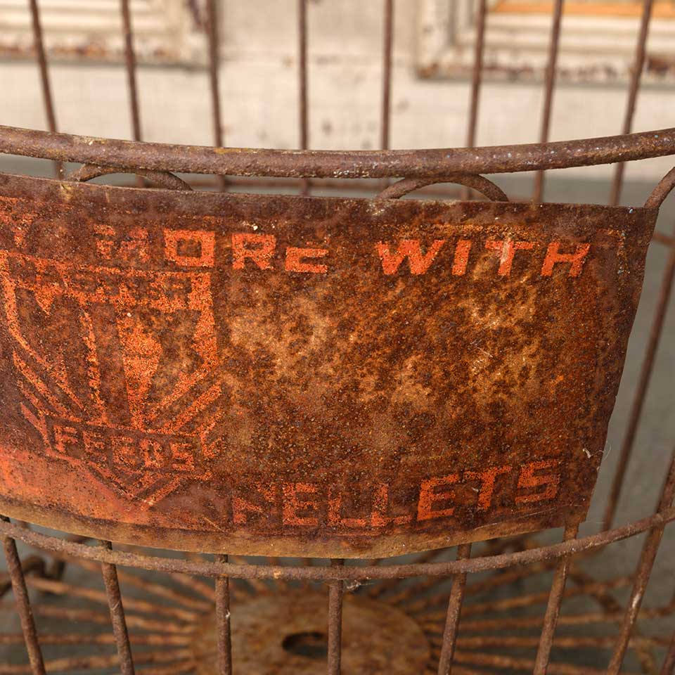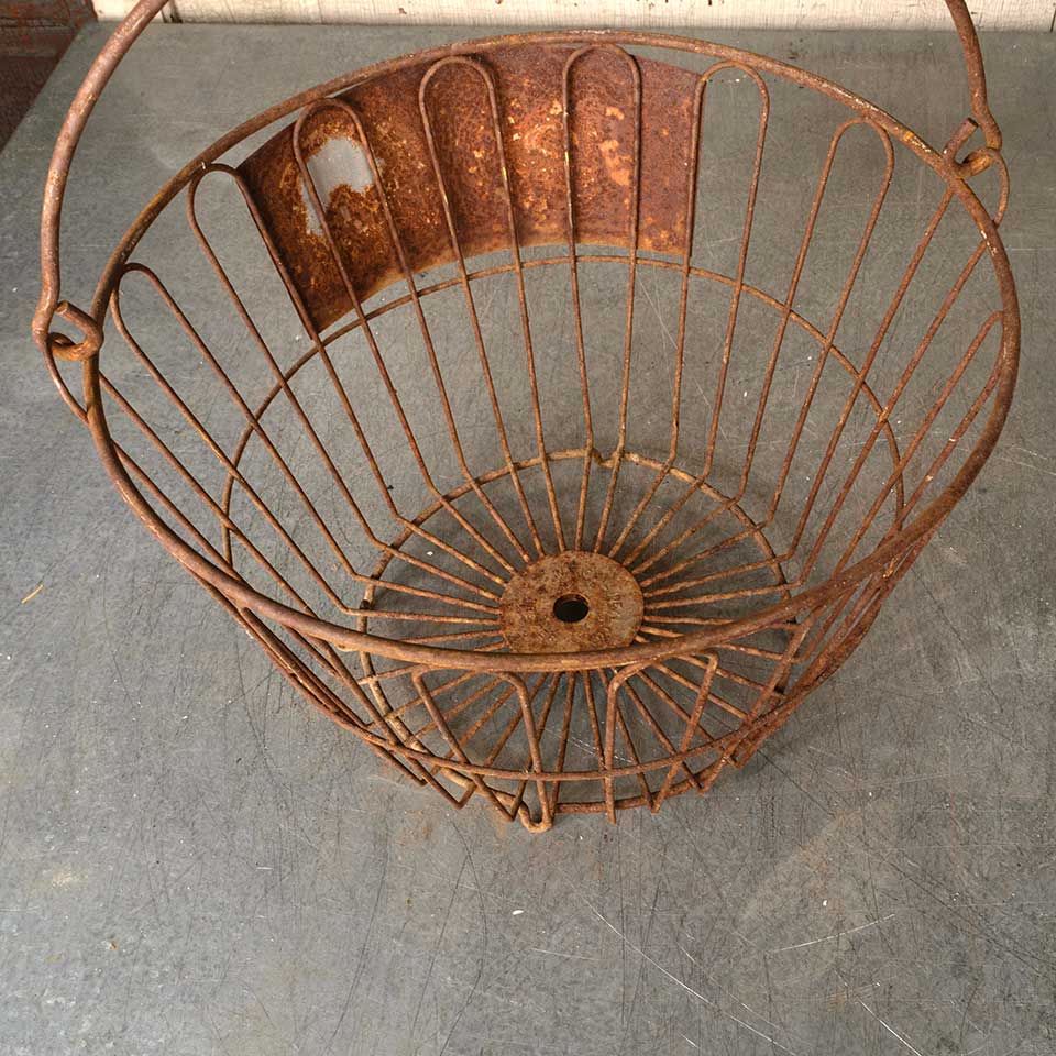 Antique metal wire farm egg basket measuring approx. 14 1/4" in diameter x 10" tall. See photos to evaluate condition.