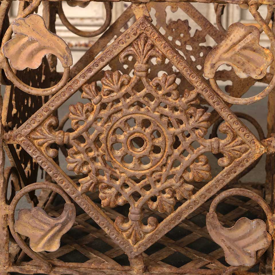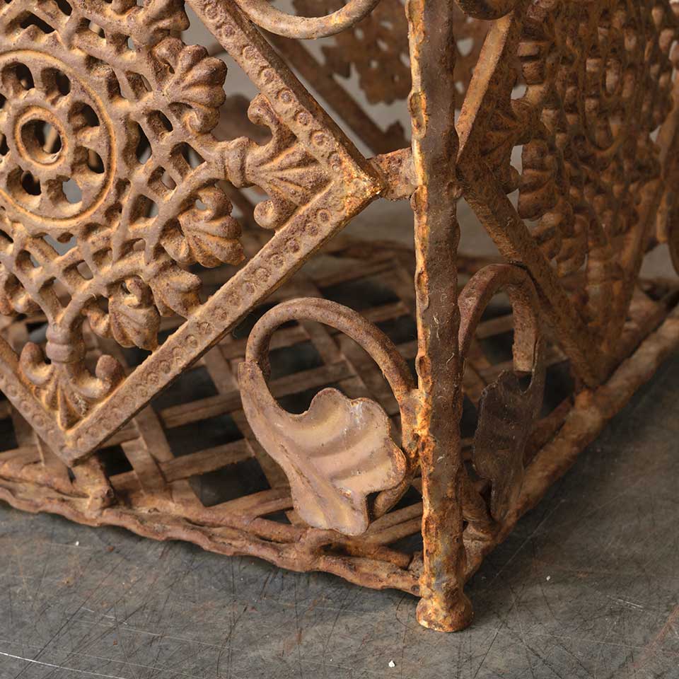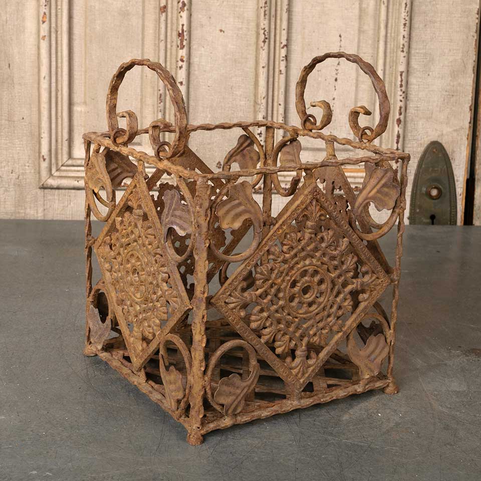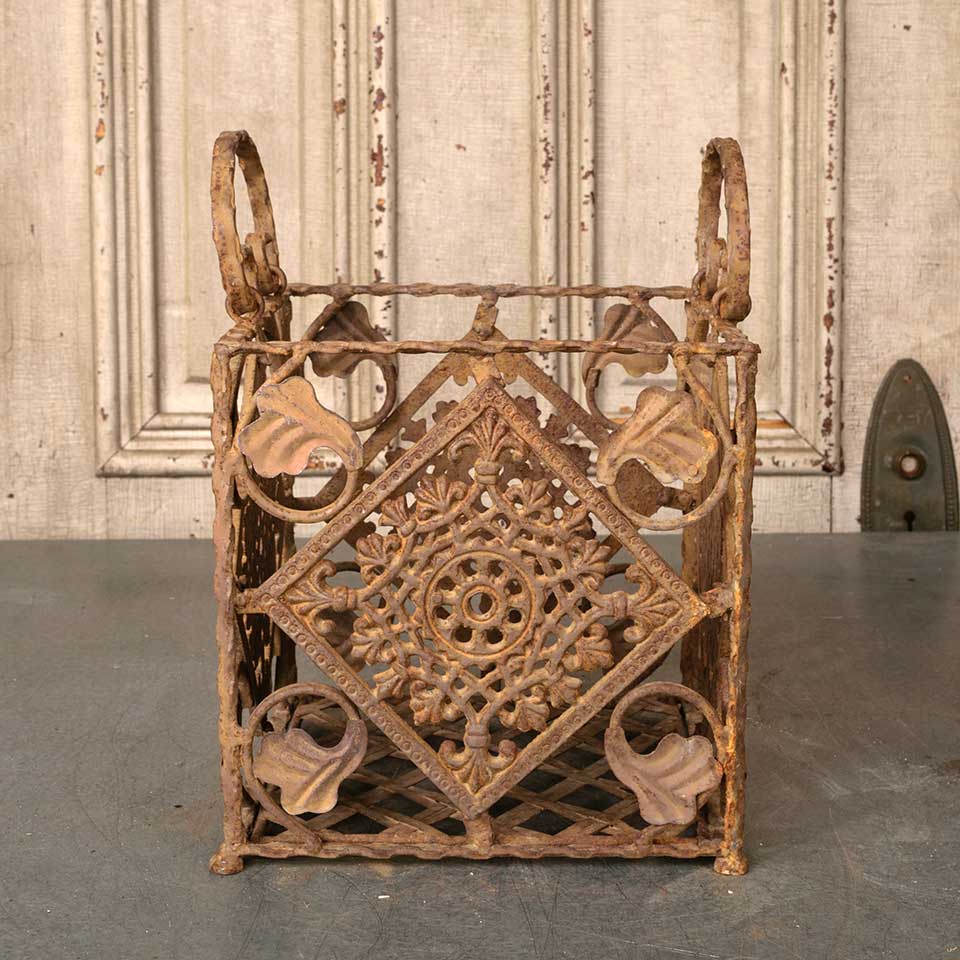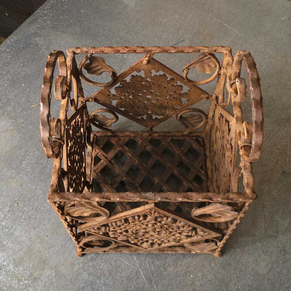 Architectural salvage vintage square metal garden patio planter with handles measuring approx. 9 3/4" x 9 3/4" x 9 3/4" tall. Color and condition may vary.