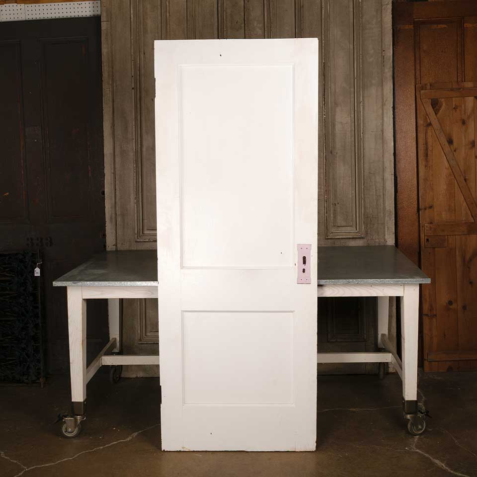 Architectural salvage antique wood two panel interior door with mortise lock measuring approx. 30" wide x 77 5/8" tall x 1 3/8" thick. This door is painted on one side and natural on the other. See photos to evaluate condition.
