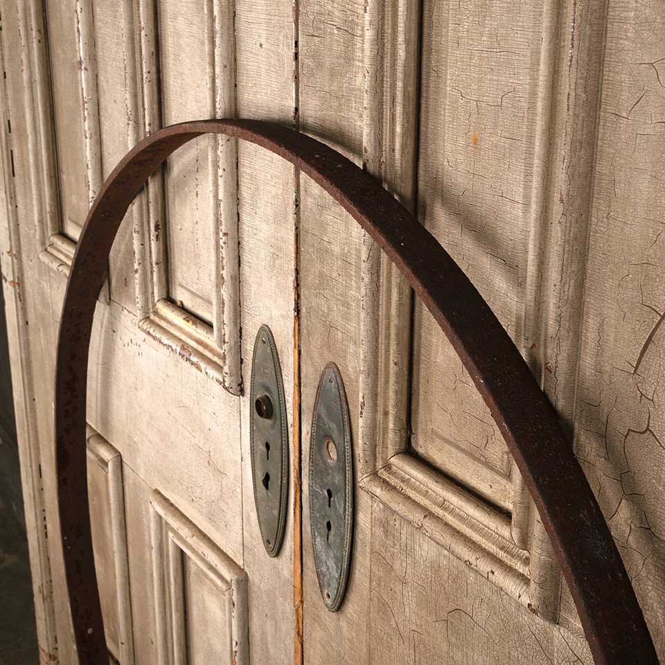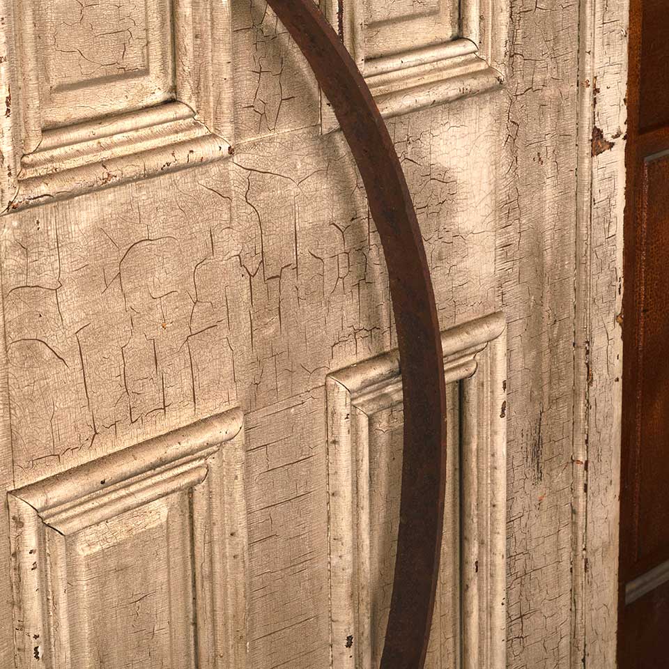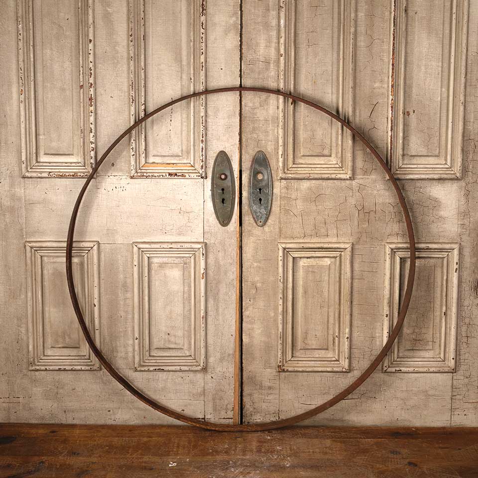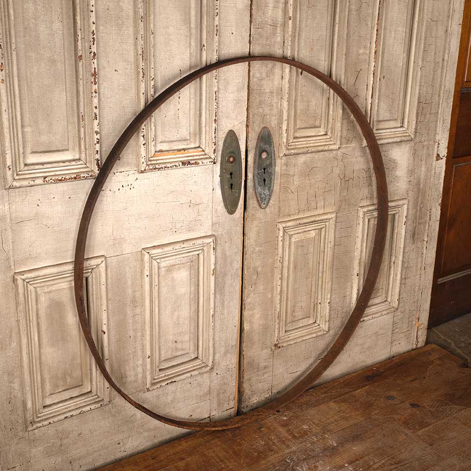 Large antique rusty iron ring measuring approx. 45" in diameter x 1 5/8" wide x 3/8" thick. See photos to evaluate condition.