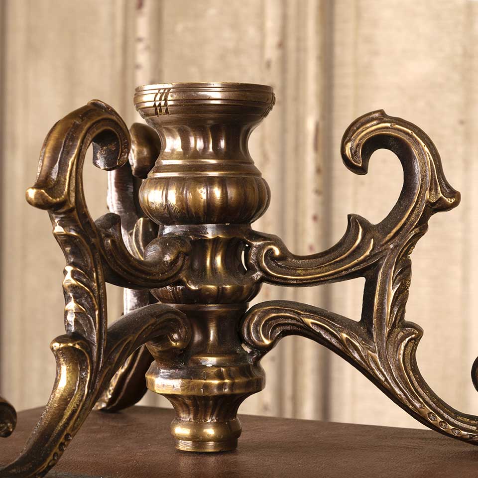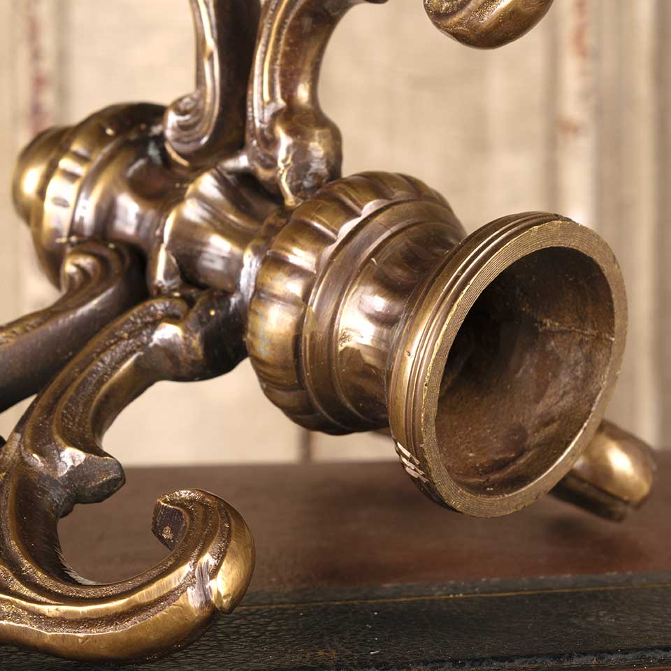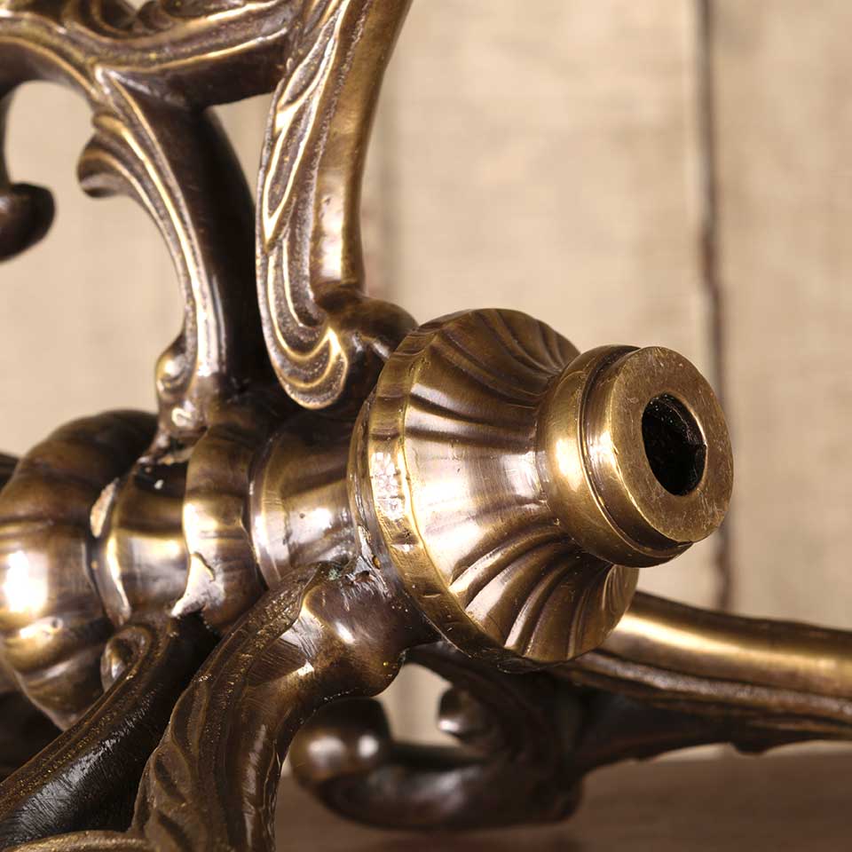 Architectural salvage ornate brass lamp base measuring approx. 8 1/2" in diameter x 5 1/4" tall. More available, please inquire.