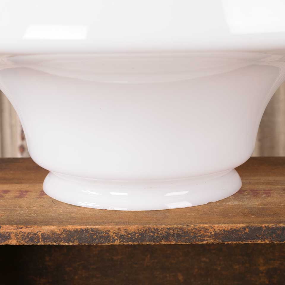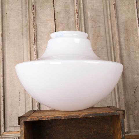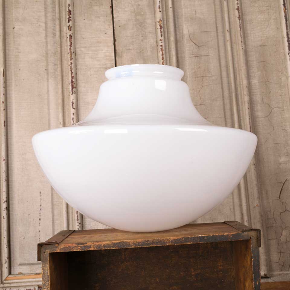 Architectural salvage antique large milk glass schoolhouse pendant light globe measuring approx. 16" in diameter x 12" tall with a 6" diameter fitter. See photos to evaluate condition.