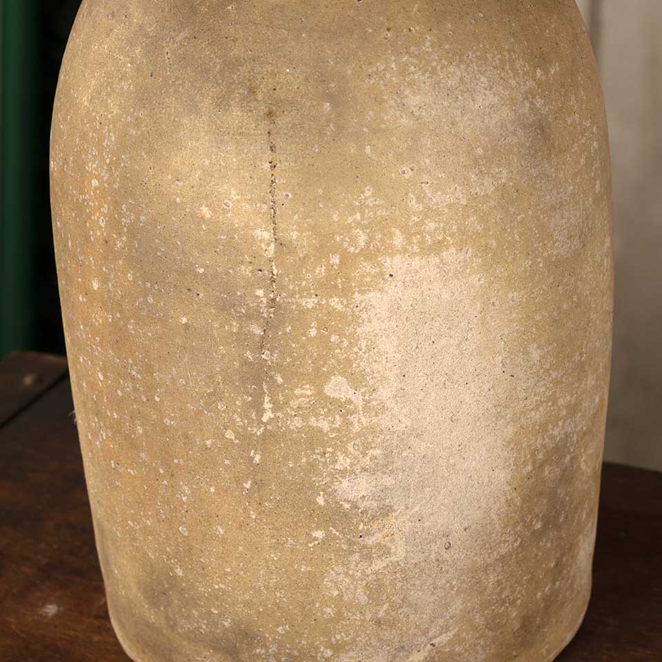 Antique primitive American stoneware crock canning storage jar measuring approx. 5 3/4" in diameter x 8 7/8" tall with a 1 7/8" diameter opening. There are some chips on the base and one on the top rim. See photos to evaluate condition.