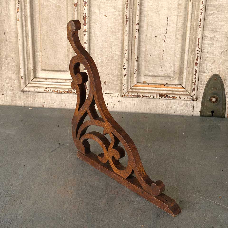 Architectural salvage antique oak wood decorative furniture or interior trim bracket measuring approx. 1" wide x 13 5/8" tall x 14" front to back. Se photos to evaluate condition.