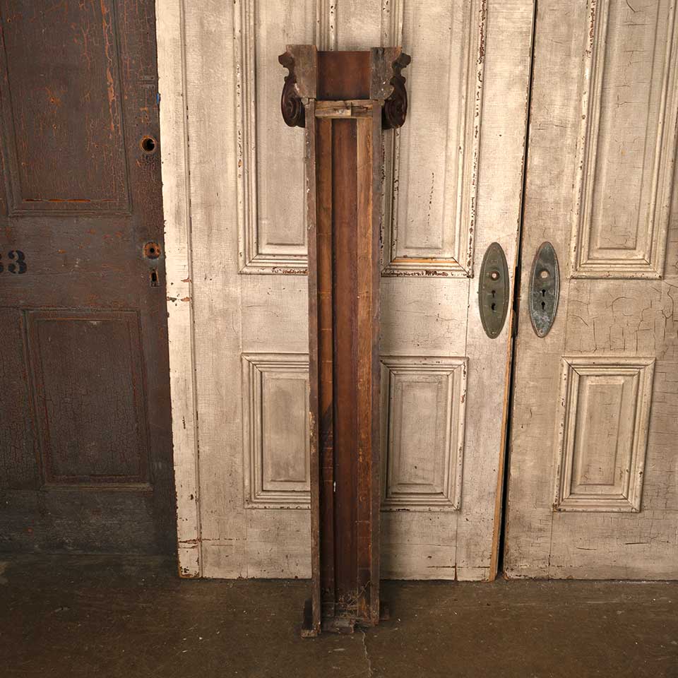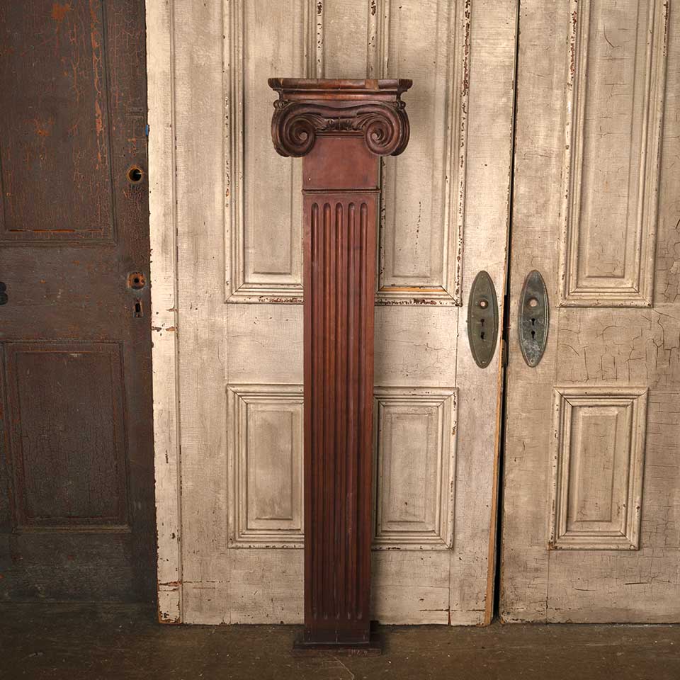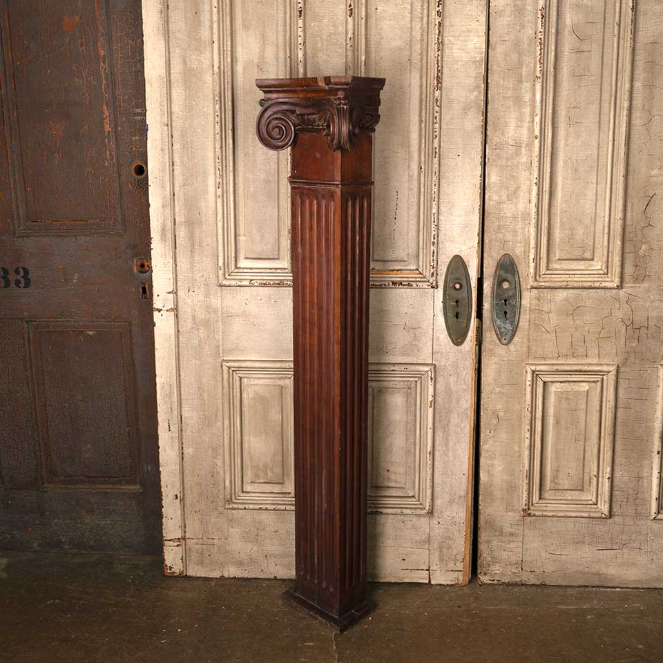 Architectural salvage antique fluted wood column pilaster measuring approx. 12" wide x 56 3/8" tall x 7 1/4" front to back (overall dimensions). There's some wood and trim loss. See photos to evaluate condition.