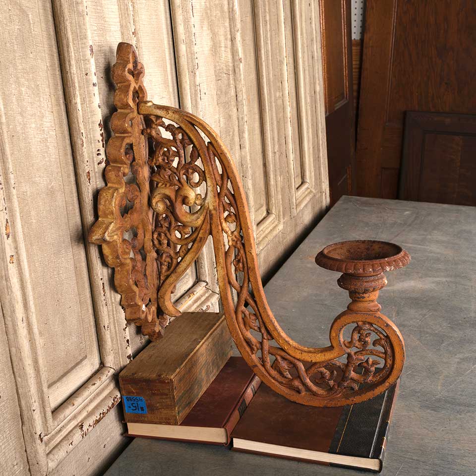 Large painted cast iron candle holder wall sconce measuring approx. 11 1/4" wide x 19" tall x 14 1/8" front to back. See photos to evaluate condition.