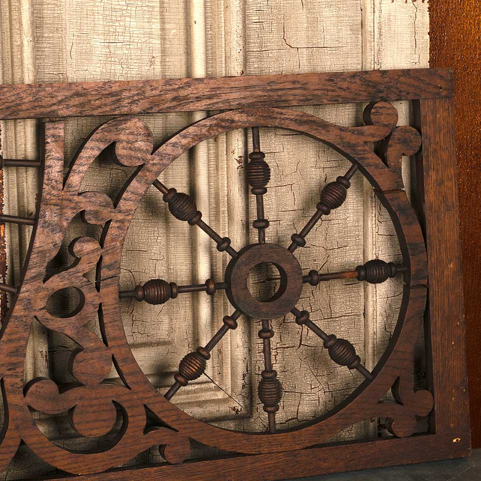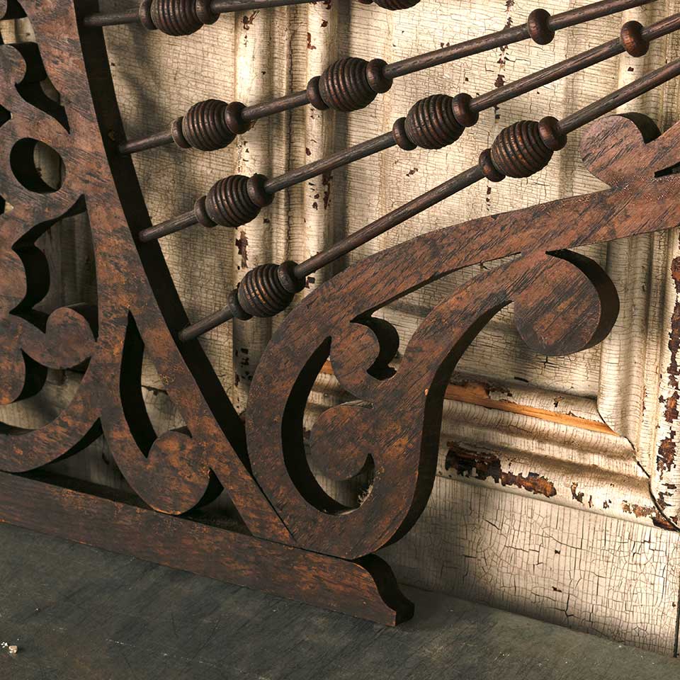Set of two architectural salvage antique oak Victorian interior stick and ball fretwork panels each measuring approx. 15" wide x 34" tall x 3/4" thick. See photos to evaluate condition. Priced at $575 for the two piece set.