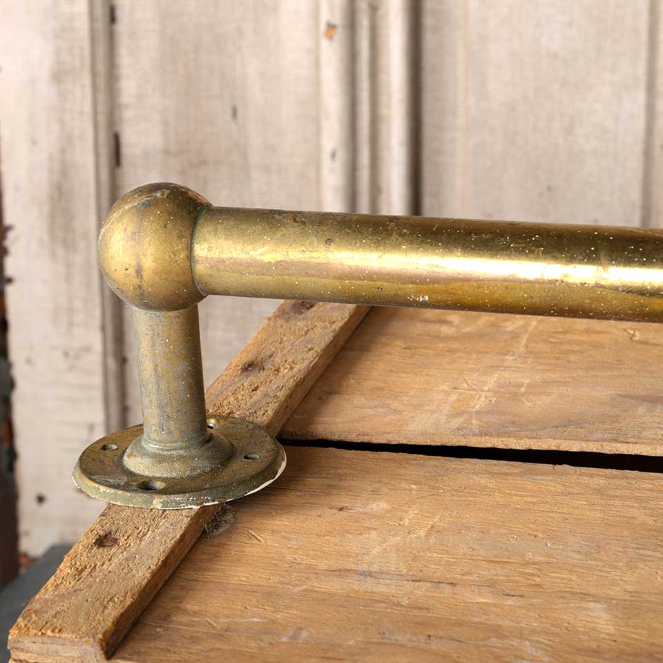 Architectural salvage antique metal bathroom towel bar measuring approx. 20 1/2" wide x 2 1/2" tall x 3 1/2" front to back. See photos to evaluate condition.