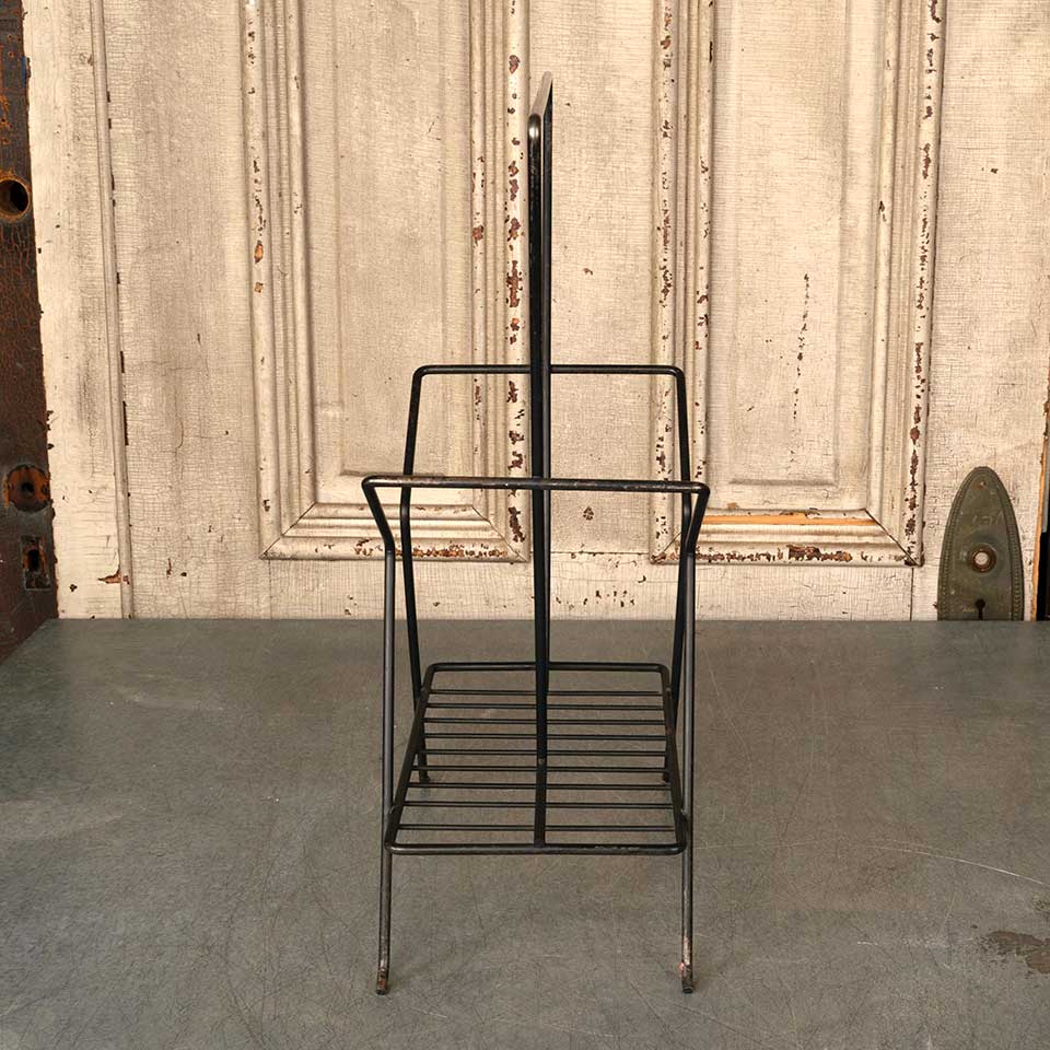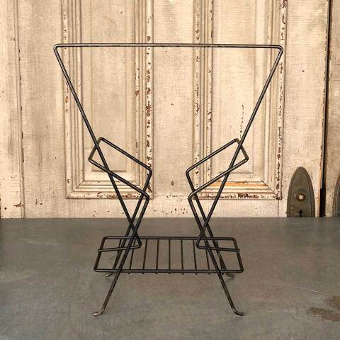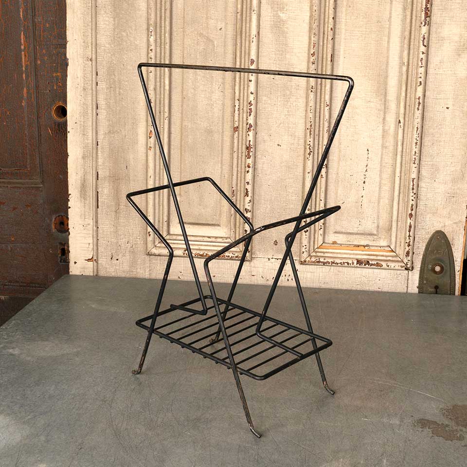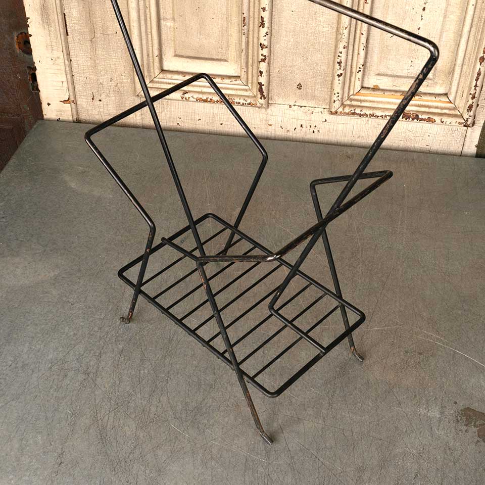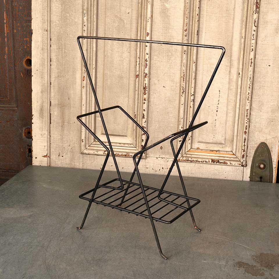 Mid Century Modern vintage metal wire magazine rack measuring approx. 16 3/8" wide x 19 5/8" tall x 7 1/8" front to back. See photos to evaluate condition.