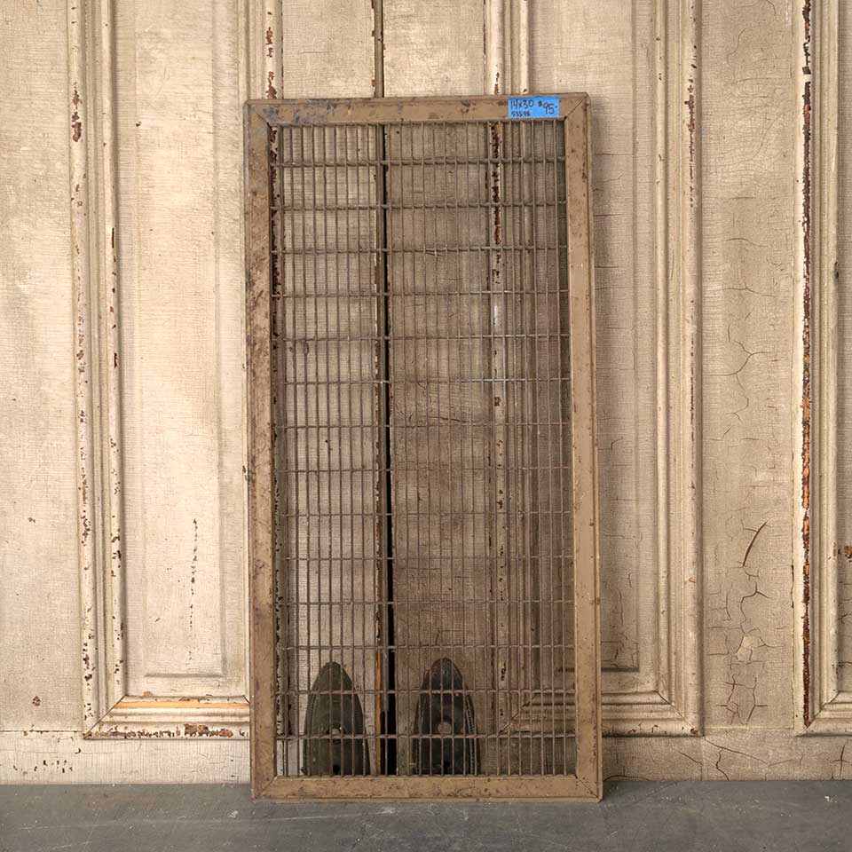 Architectural salvage vintage metal cold air return floor grate vent cover measuring approx. 13 5/8" x 29 3/4" (insert dimensions) and 15 13/16" x 31 15/16" (overall dimensions). See photos to evaluate condition.