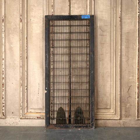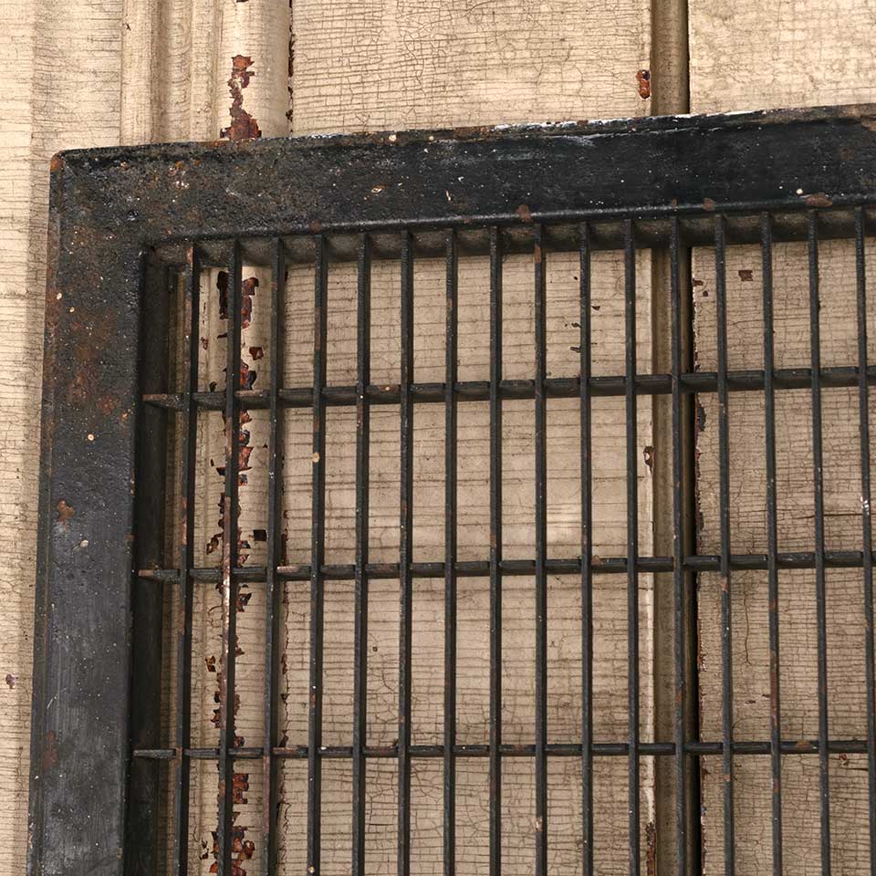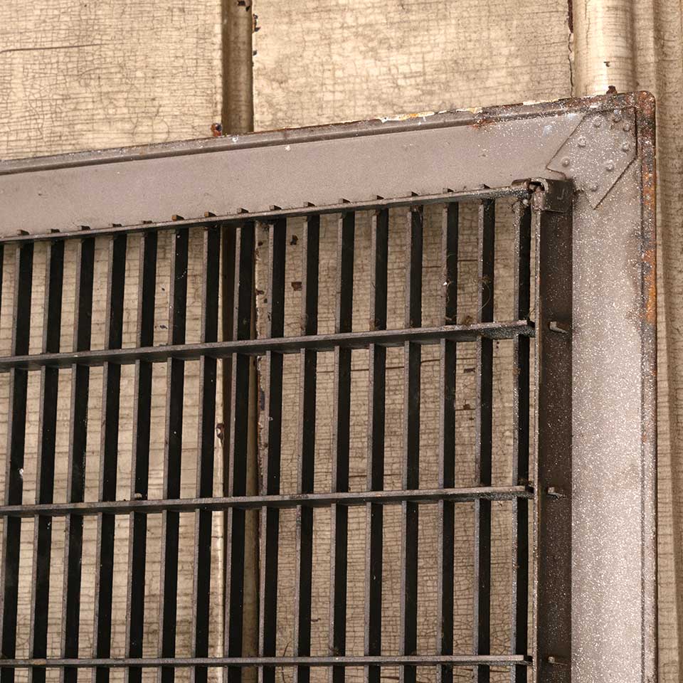 Architectural salvage vintage metal cold air return floor grate vent cover measuring approx. 11 3/4" x 29 3/4" (insert dimensions) and 13 7/8" x 31 15/16" (overall dimensions). See photos to evaluate condition.