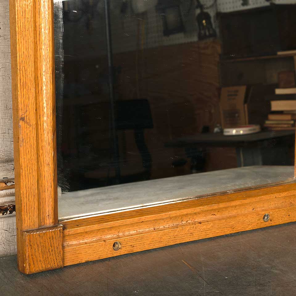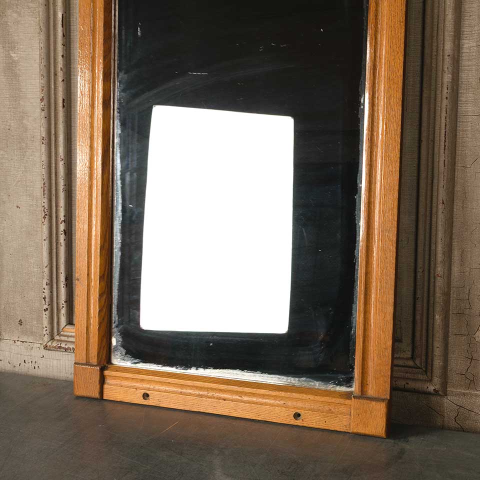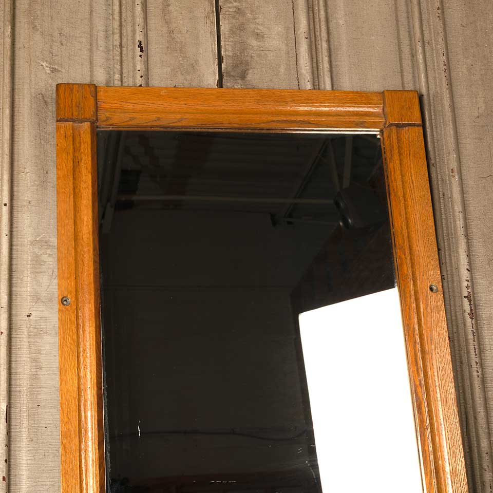 Wood framed wall mirror measuring approx. 21 3/4" wide x 43 7/8" tall x " front to back. The mirror is not antique and there are some holes drilled through the frame. See photos to evaluate condition.