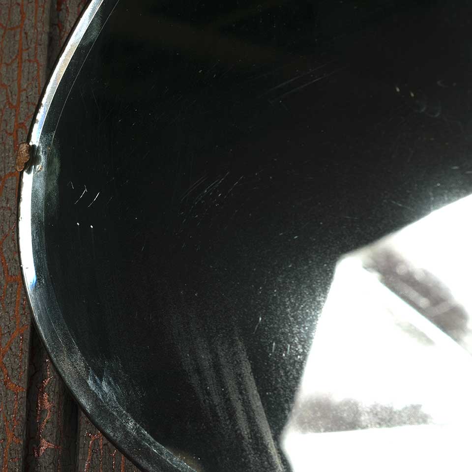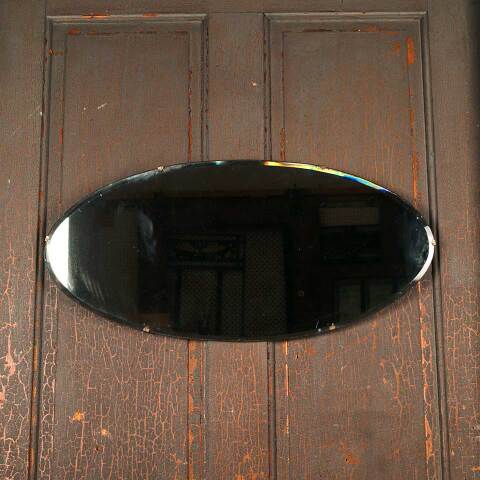 Antique beveled glass oval mirror measuring approx. 30" wide x 14" tall x 5/8" front to back. See photos to evaluate condition.
