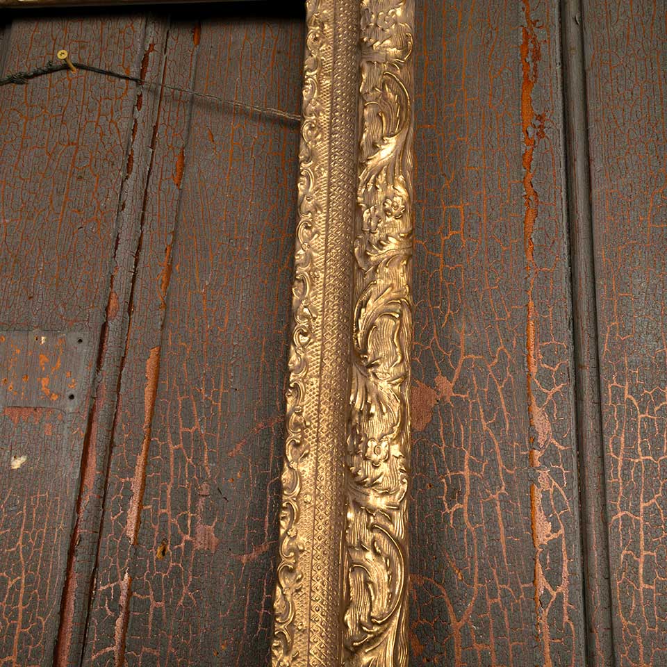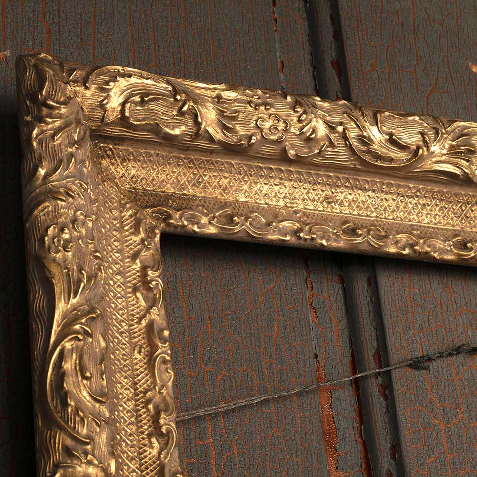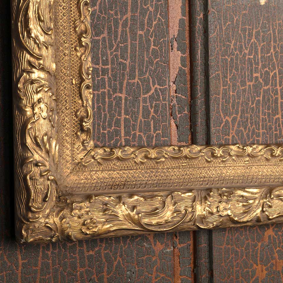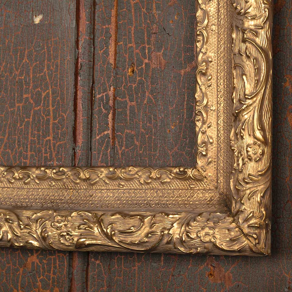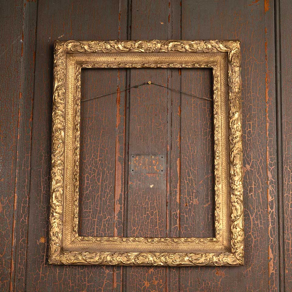 Ornate antique wood and gesso picture frame measuring approx. 21 3/4" x 25 7/8" x 1 7/8" front to back with an opening approx. 15 3/8" x 19 5/8". There's no glass with this frame. See photos to evaluate condition.