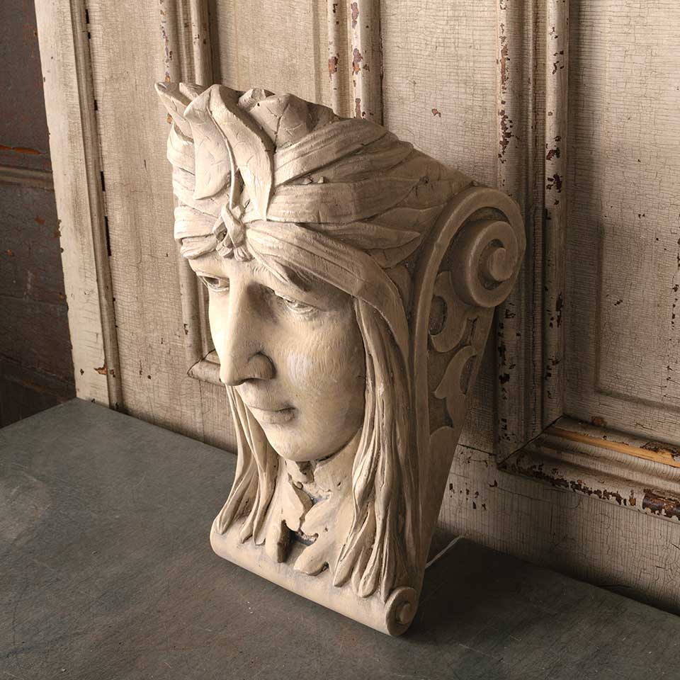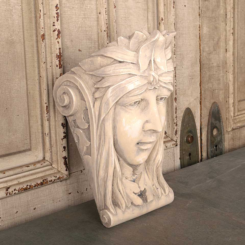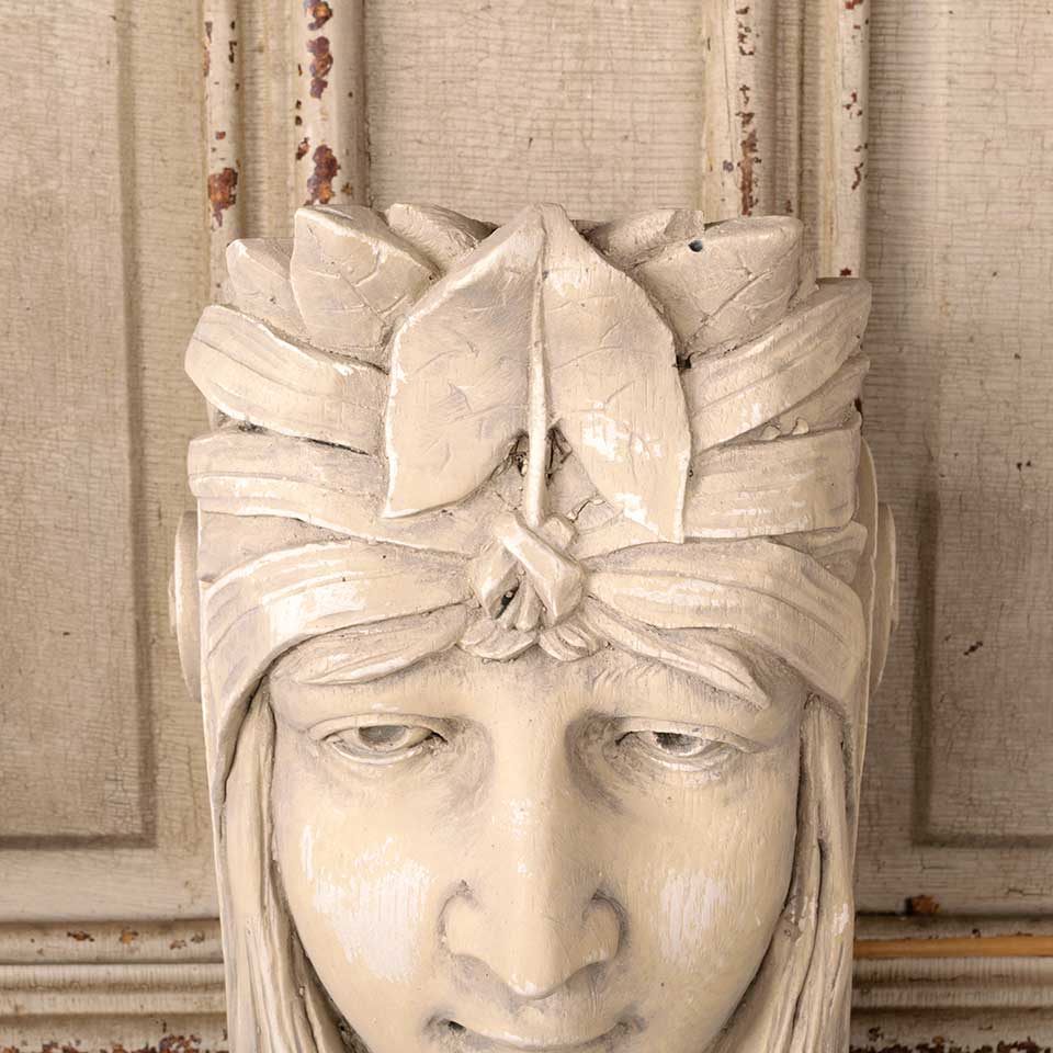 Cast plaster Empress Head wall hanging corbel bracket / shelf measuring approx. 9" wide x 12" tall x 9 1/4" front to back. See photos to evaluate condition.