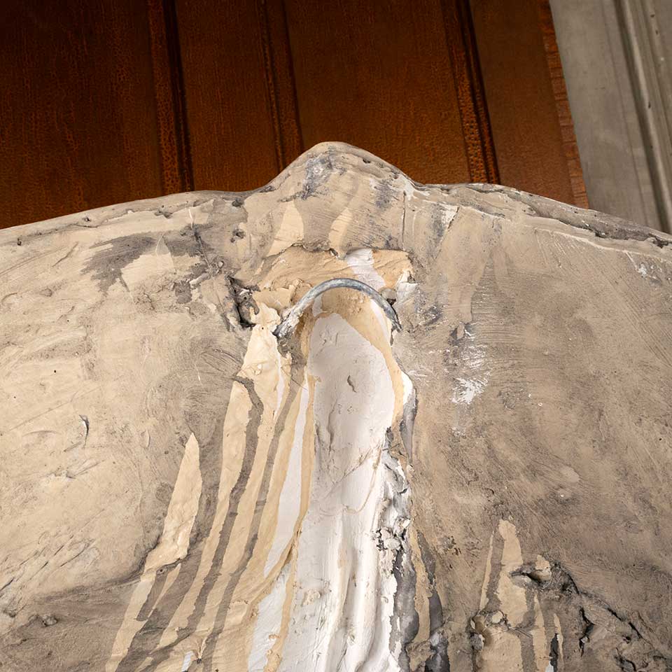 Large cast plaster lion door knocker wall plaque measuring approx. 25" wide x 29 1/2" tall x 6 1/4" front to back. See photos to evaluate condition.