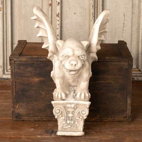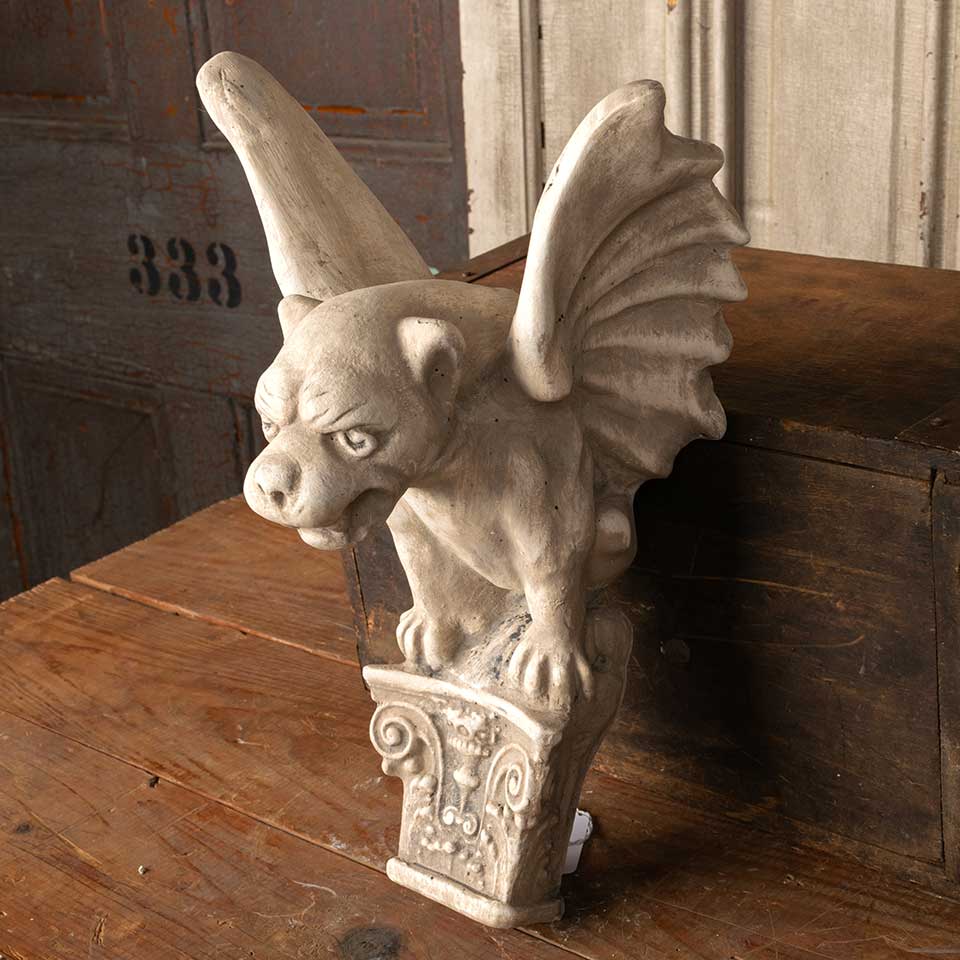 Cast plaster winged dog gargoyle wall hanging measuring approx. 8 3/8" wide x 13 1/4" tall x 7 1/4" front to back. Color and condition may vary.