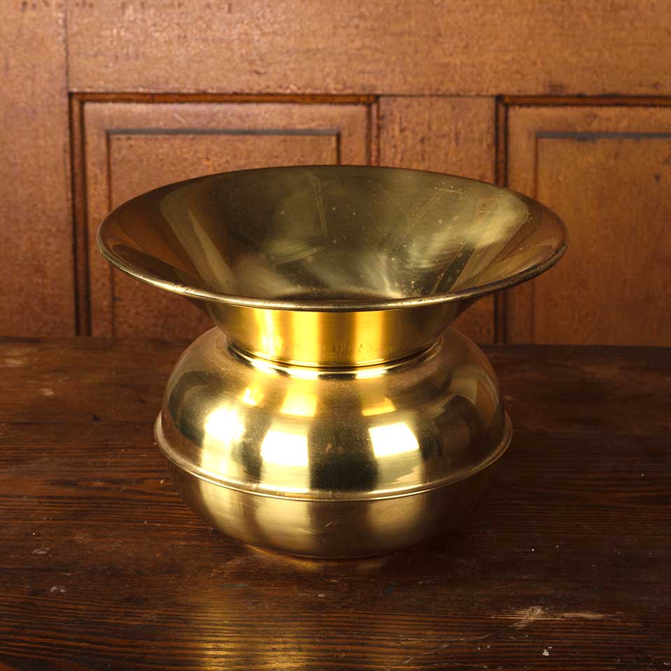 Vintage brass cuspidor spittoon measuring approx. 10 1/8" in diameter x 7" tall. See photos to evaluate condition.