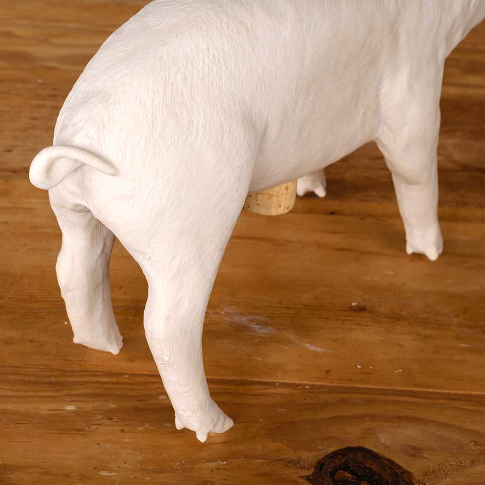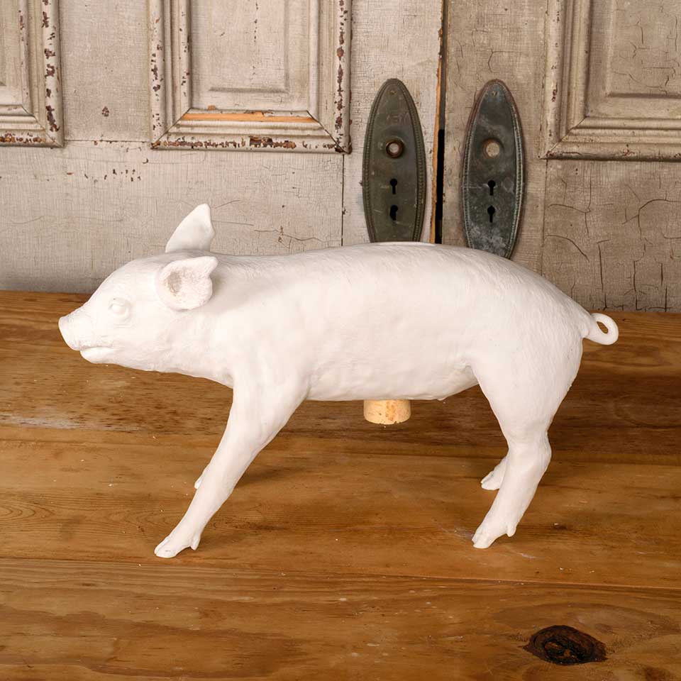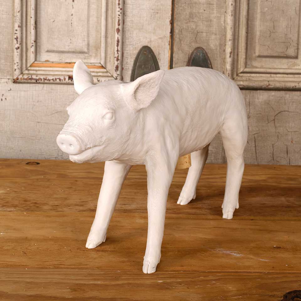 Cast resin piglet piggy bank measuring approx. 5" wide x 10 1/8" tall x 17 1/2" front to back. See photos to evaluate condition.