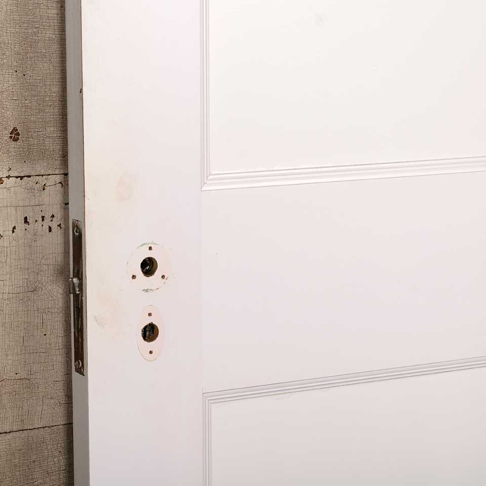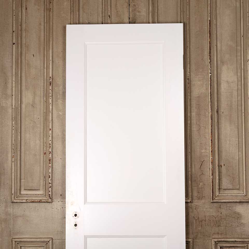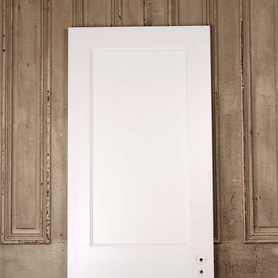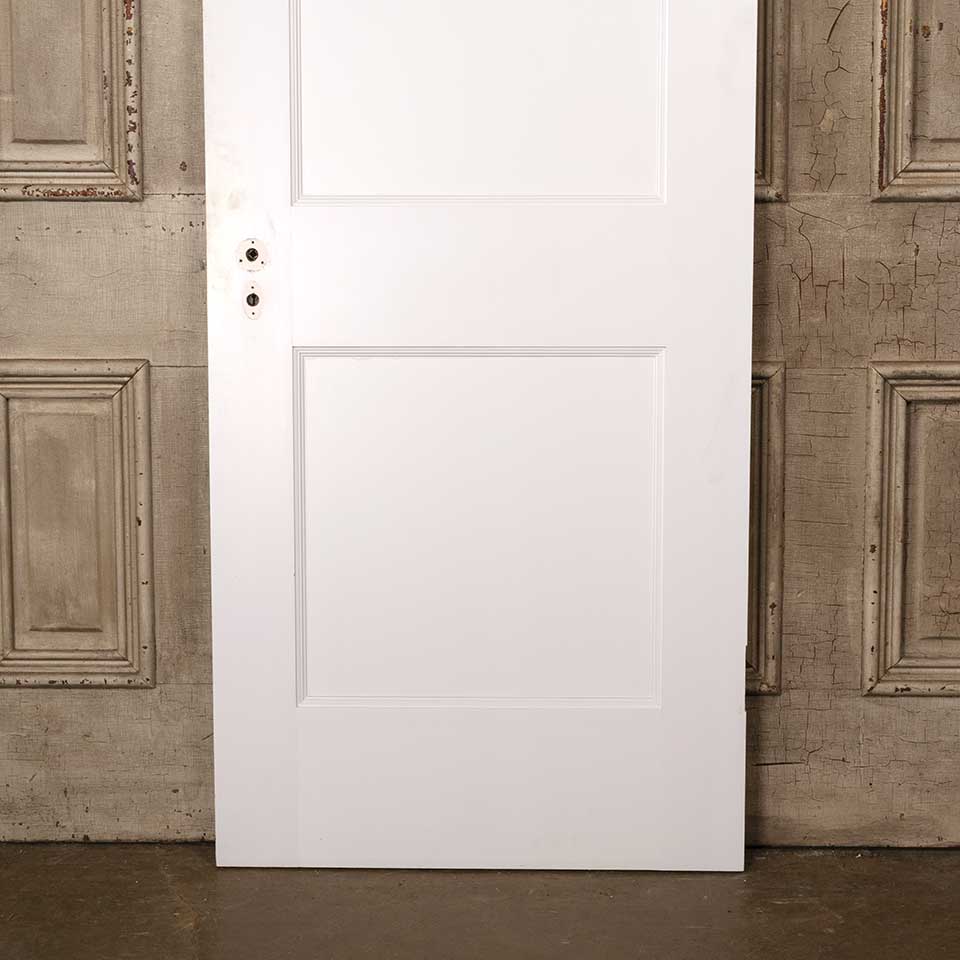 Architectural salvage painted two panel interior door with mortise lock measuring approx. 27 3/4" wide x 77 3/8" tall x 1 3/8" thick. This is not an antique door. See photos to evaluate condition.
