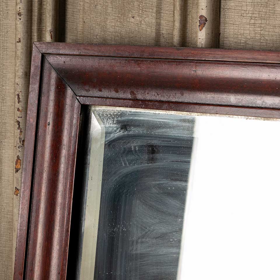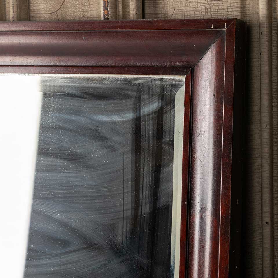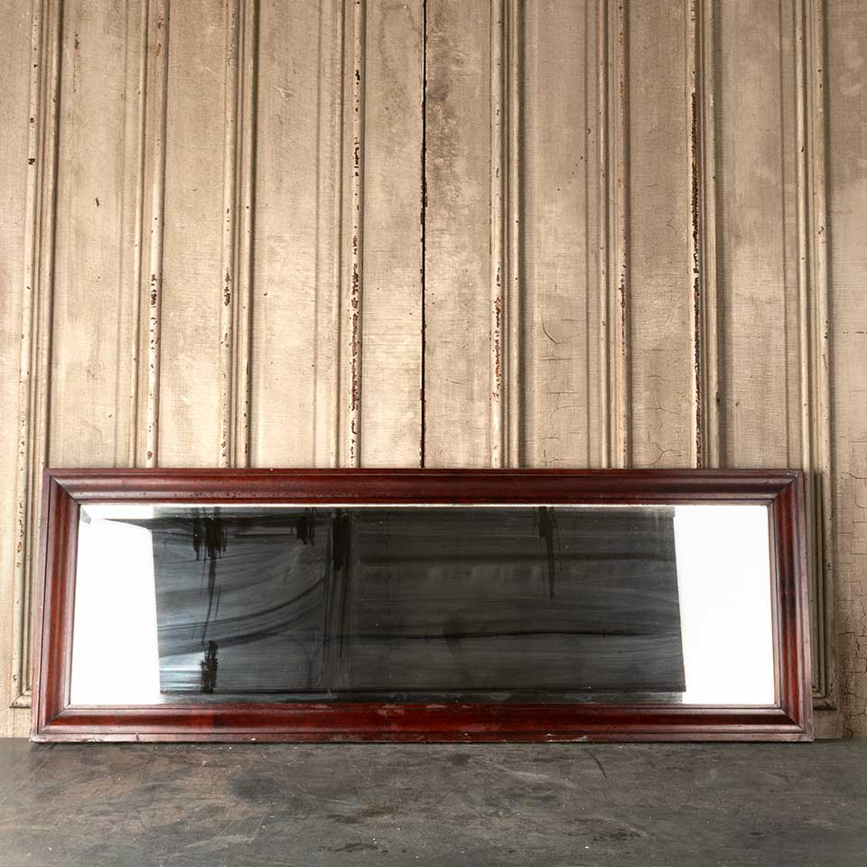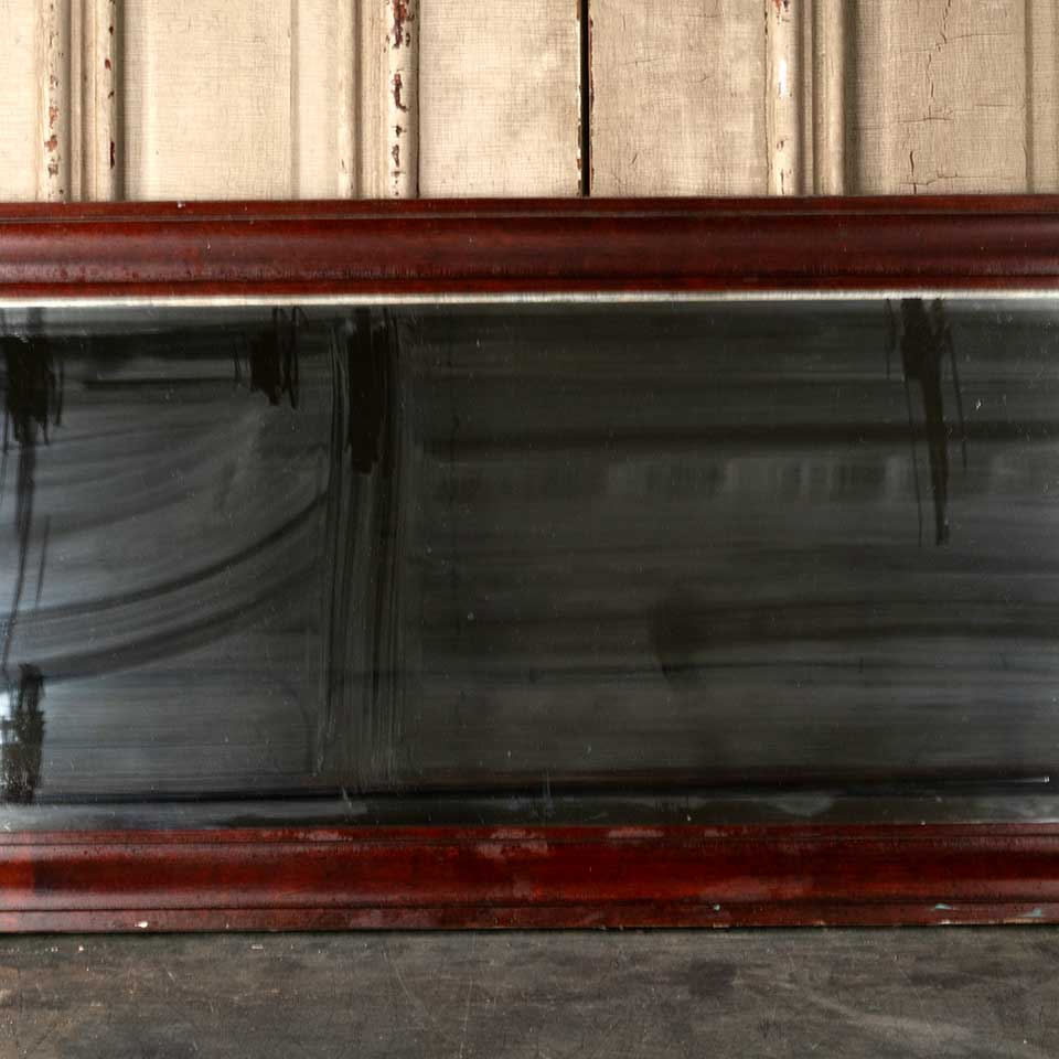Architectural salvage antique wood framed fireplace mantel beveled glass mirror measuring approx. 52 1/2" wide x 18 1/2" tall x 1 7/16" front to back. See photos to evaluate condition.