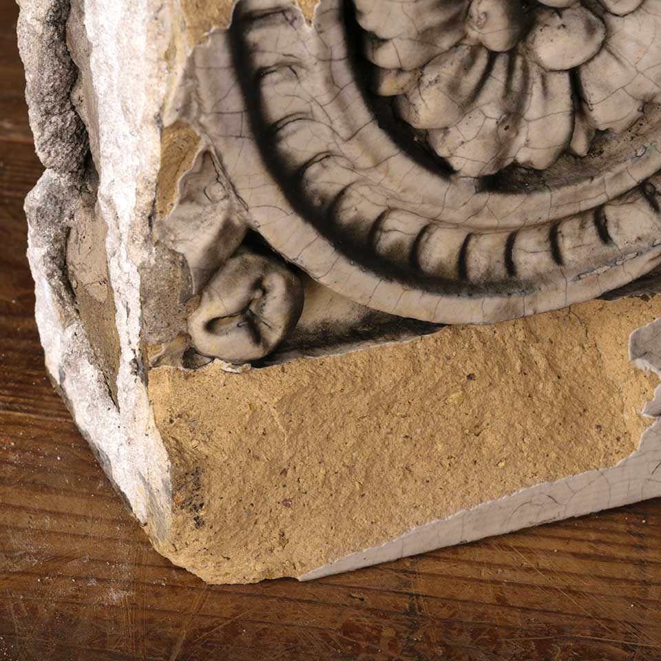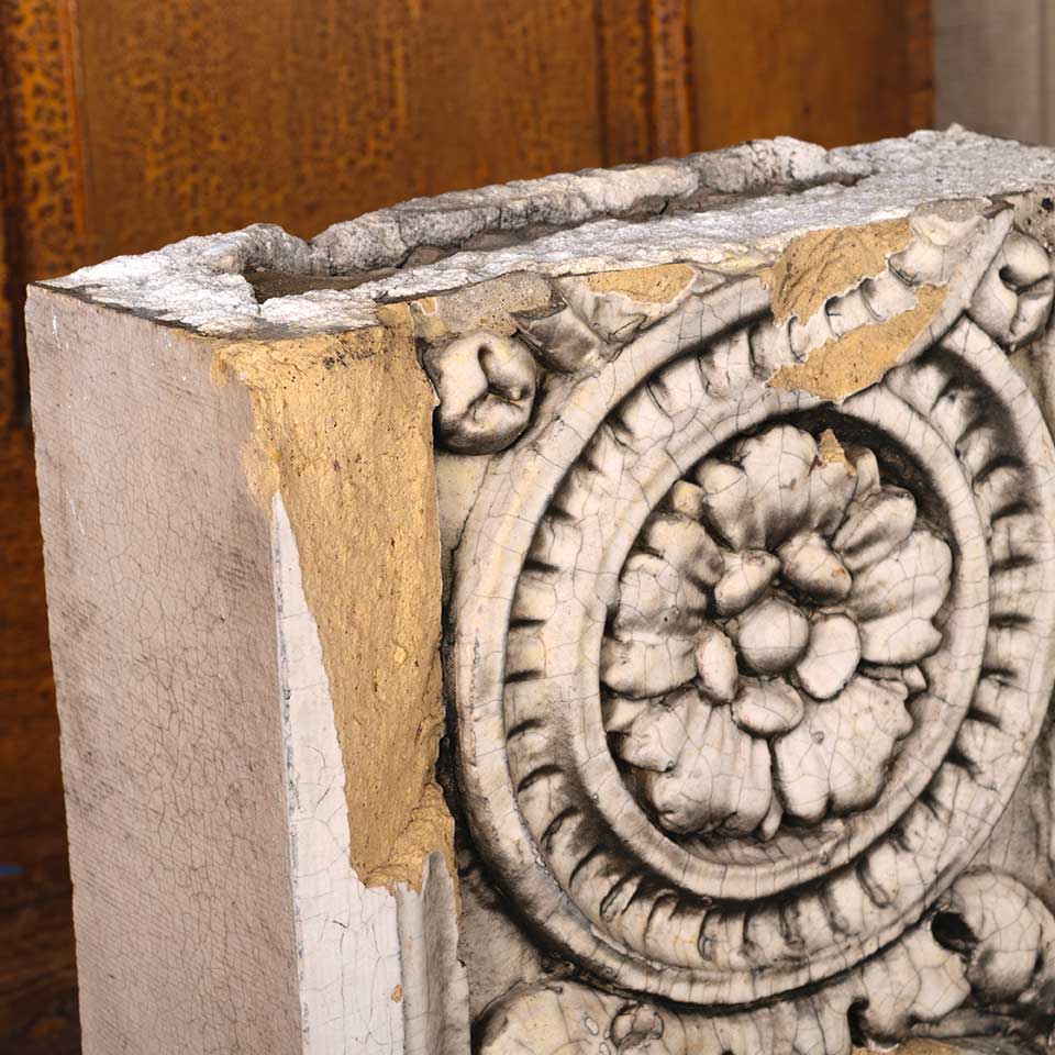 Architectural salvage terra cotta building ornament measuring approx. 10" wide x 13" tall x 4" front to back. This piece was originally part of the Peruna Drug/Medicine Company Building in Columbus, Ohio lost in 1973. See photos to evaluate condition.