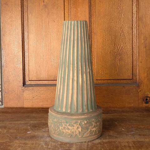 Terra cotta garden birdbath gazing ball pedestal base measuring approx. 22 1/4" tall with a 4 1/2" diameter top and a 10 1/4" diameter base. See photos to evaluate condition.