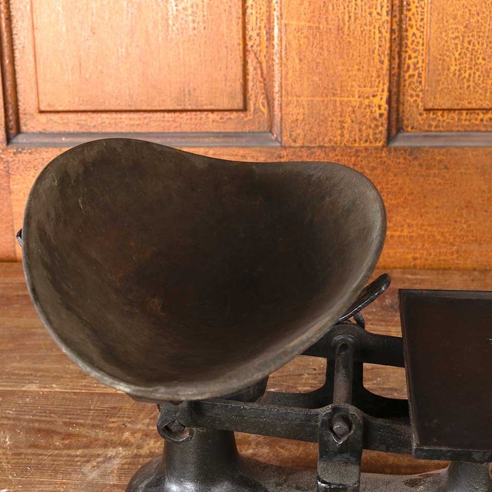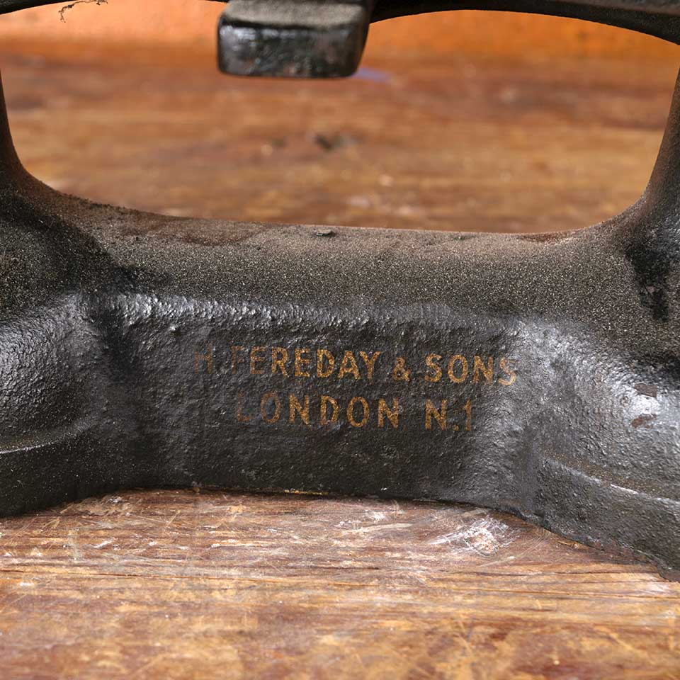 Antique store countertop balance scale marked H. FEREDAY & SONS LONDON N.1 measuring approx. 16" wide x 11 1/2" tall x 14 1/4" front to back. See photos to evaluate condition.